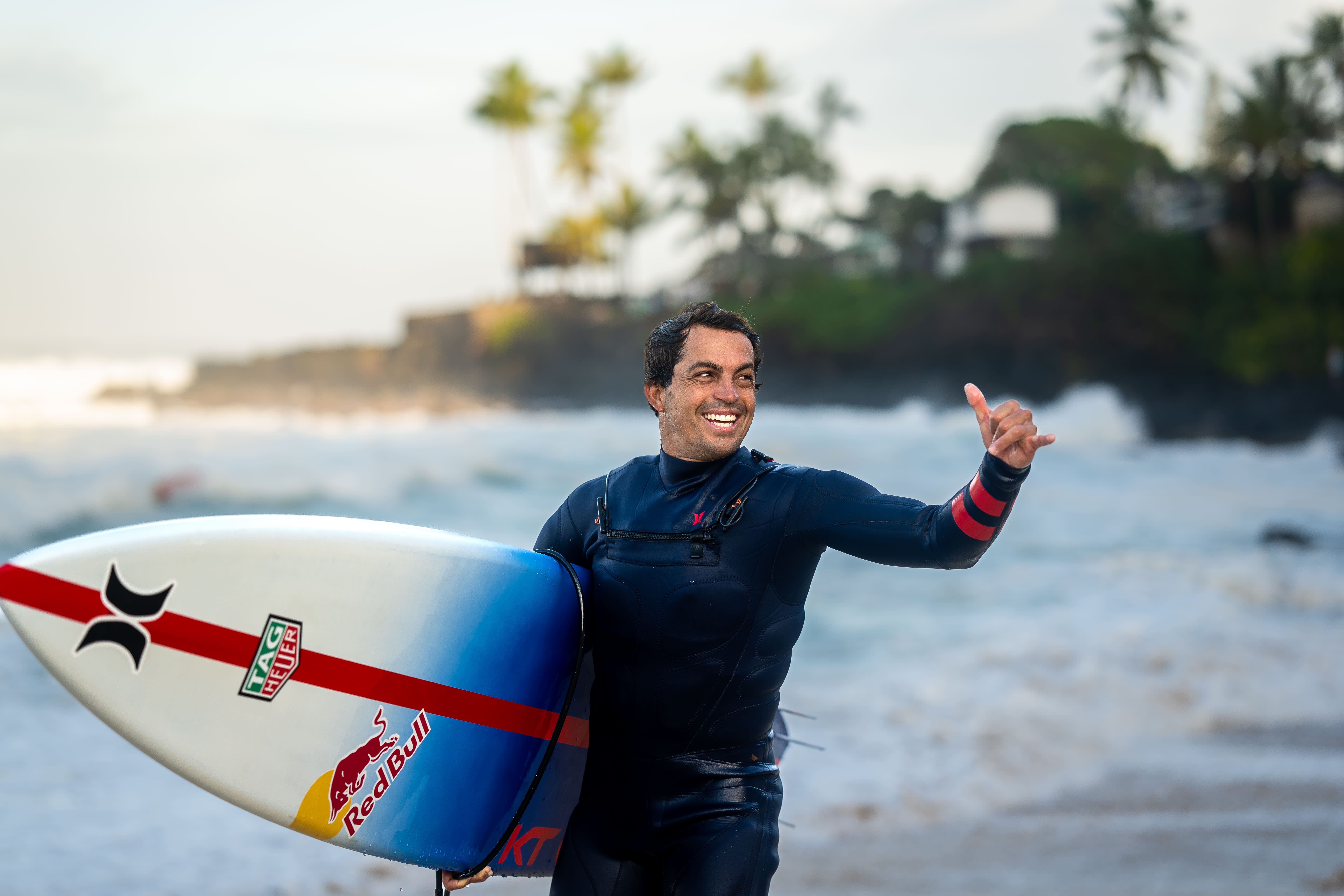 At home in Hawaii, Lenny trains three to five times per week, depending on surf conditions. If the waves are good, he’ll surf. If not, he’ll hit the gym. When traveling, he’ll adapt his workouts and reach for Red Bull, giving him caffeine to stay alert and sugars as an energy source for his body. “Red Bull is vital for travel and adjusting to time zones,” he said, noting the boost it provides him before big wave competitions.