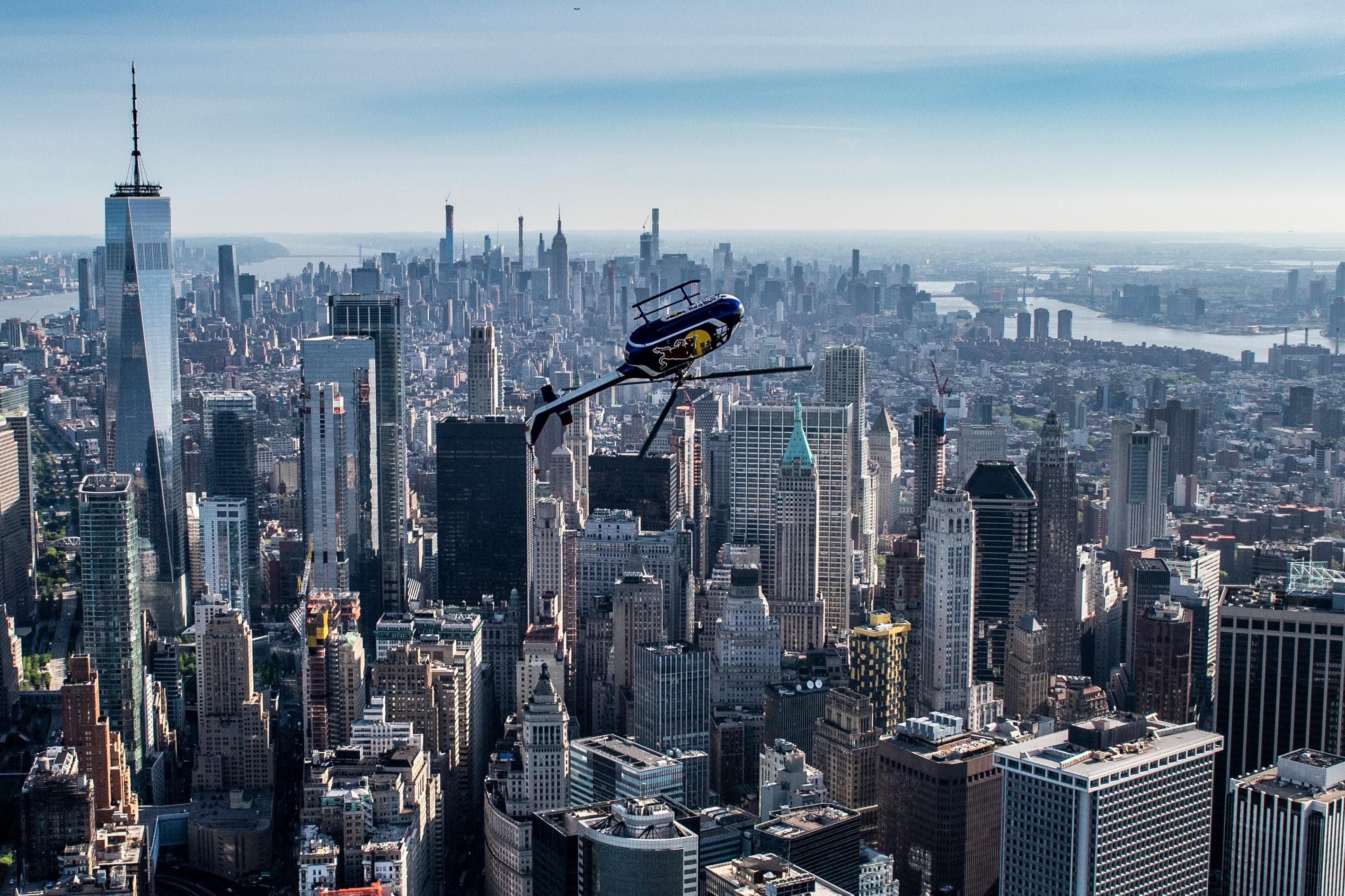 Aerobatics Red Bull pilot and former U.S Serviceman Aaron Fitzgerald took over the open space above the Hudson River in New York to stun onlookers with a wide range of helicopter tricks.