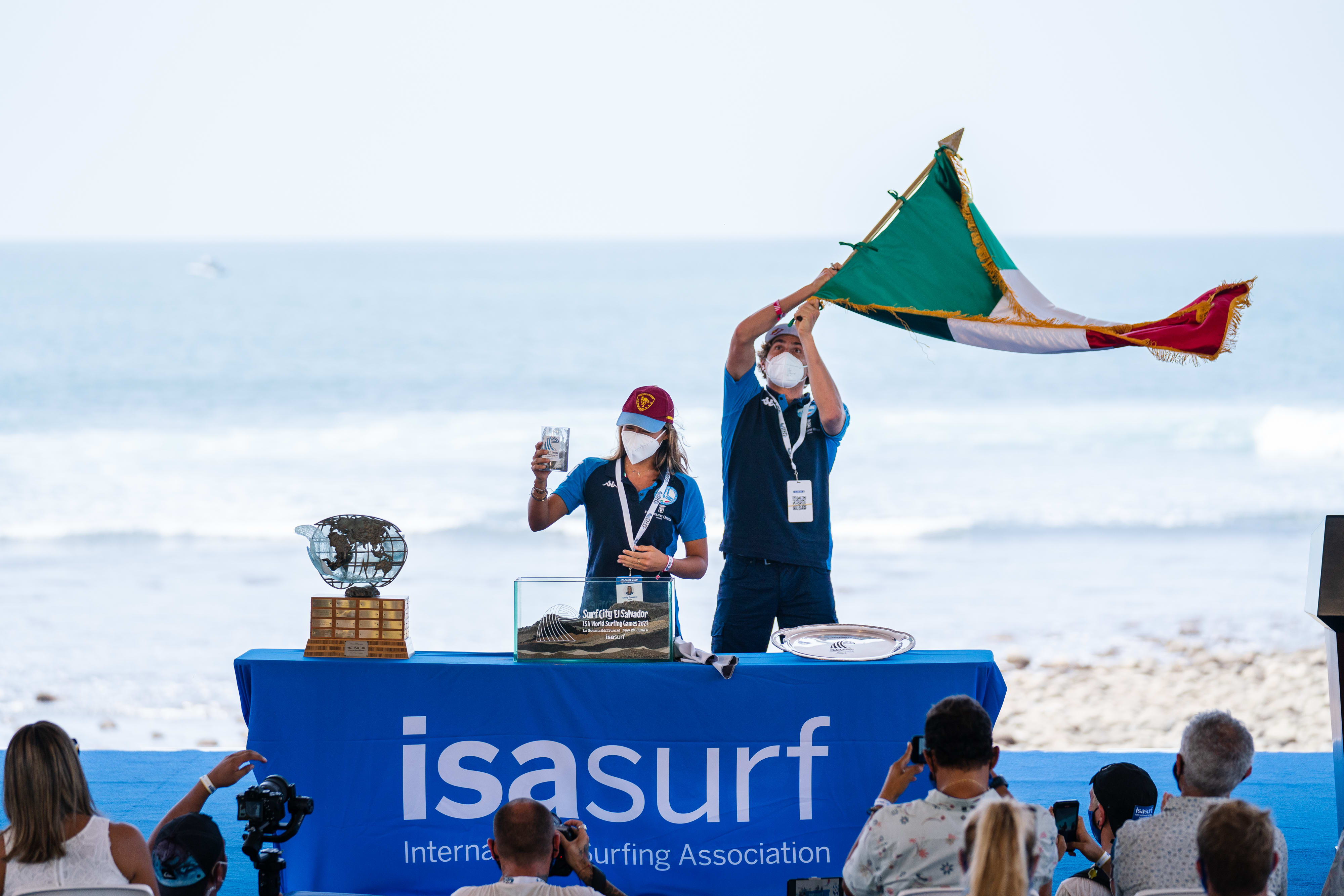 After a long build-up and with surfers flocking from all corners of the globe to compete, the 2021 ISA World Surfing Games got underway today in El Salvador. Salvadoran president Nayib Bukele welcomed the athletes the previous day and the 51 competing nations participated in the traditional ISA Sands Of The World Ceremony, whereby sands from every country are poured into a common vessel to signify the unity, through surfing, of the competing nations.