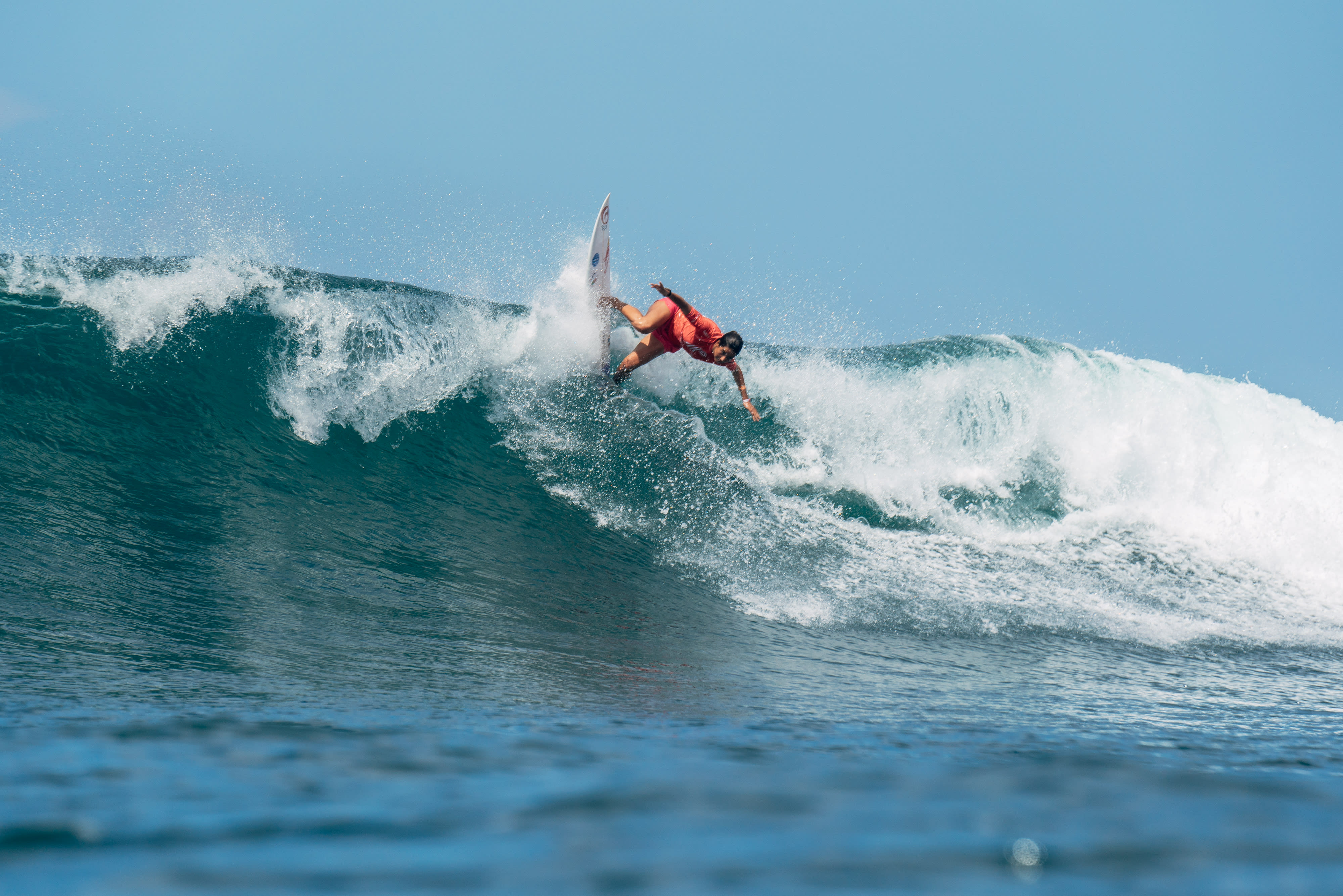 On the women's side of the draw, a handful of fired-up competitors made huge steps towards their goal of qualification for Tokyo. Portugal's Teresa Bonvalot, Peru's Daniella Rosas and Argentina's Lucia Indurain all won their main round heats to get a little closer to glory. Meanwhile, in the repechage rounds Australia's Sally Fitzgibbons and Tahiti's Vahine Fierro were among the standouts as they take the longer route to glory.