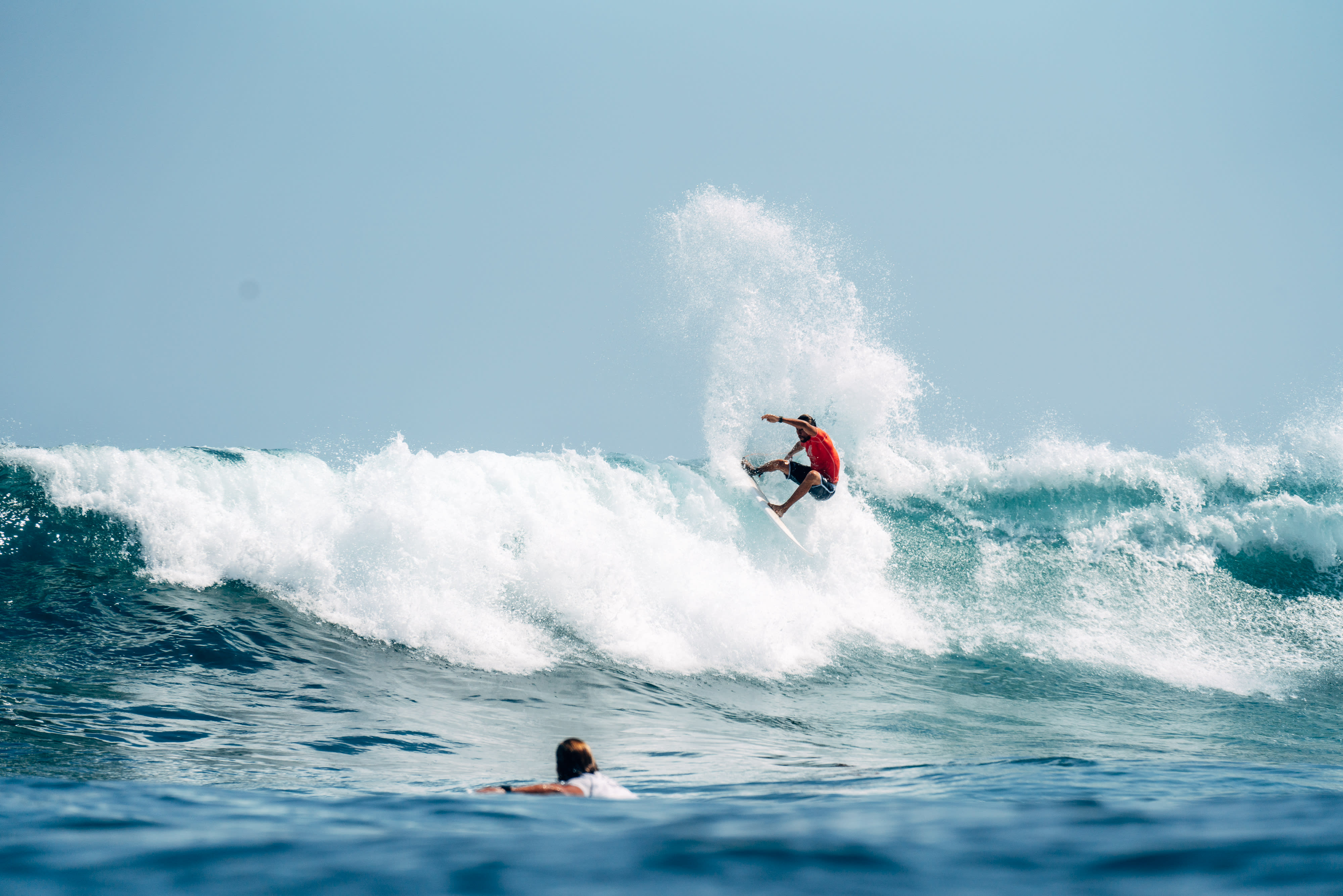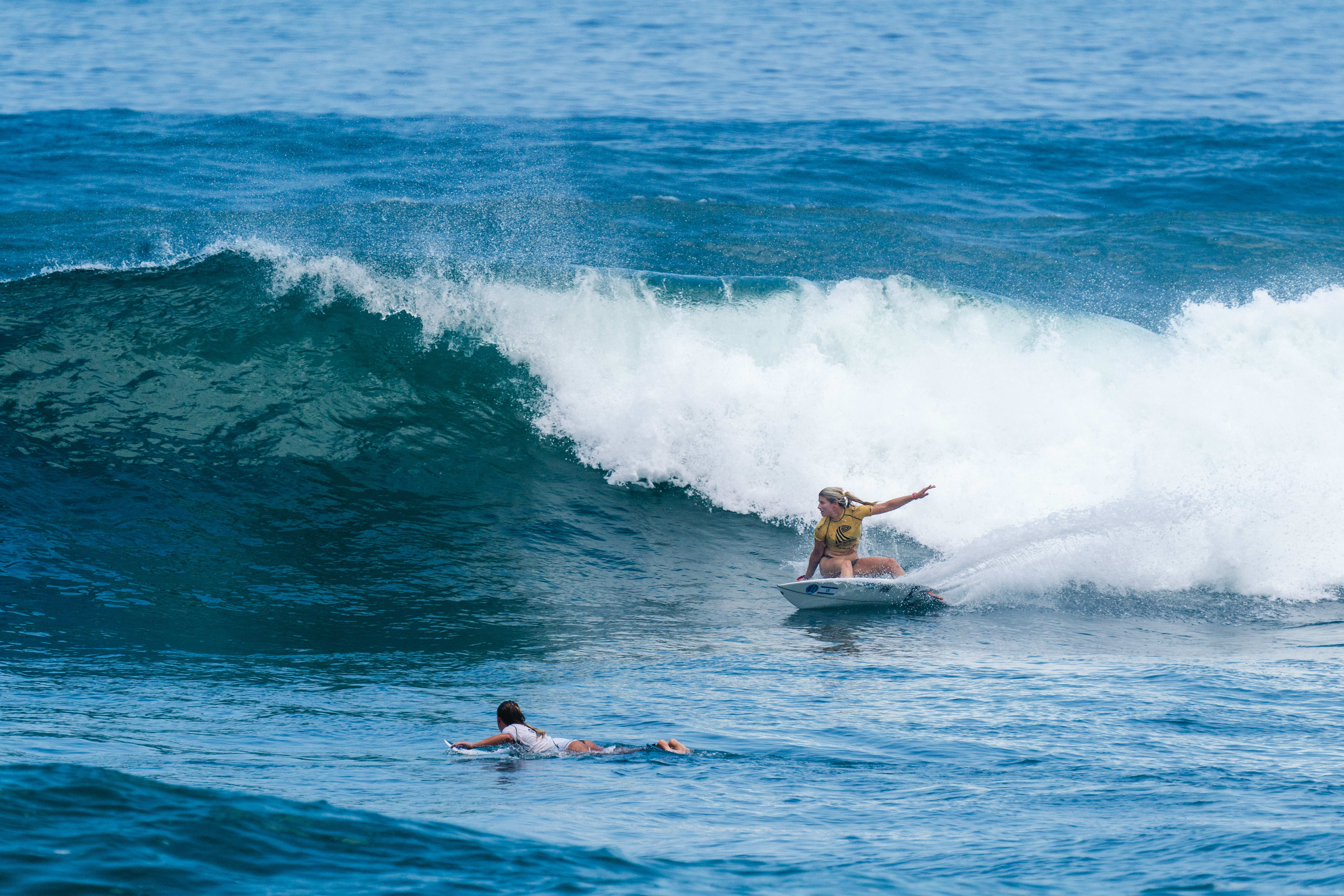 Early standout performers included Brazil's Italo Ferreira, Australia's Ryan Callinan, and Indonesia's Rio Waida on the men's side of the draw, while American Alyssa Spencer, Portuguese Teresa Bonvalot and Peruvian legend Sofia Mulanovich were among the pick of the women. Expect fireworks on day two when big guns such as Caroline Marks, Carissa Moore, Michel Bourez and Jordy Smith take to the water for the first time.