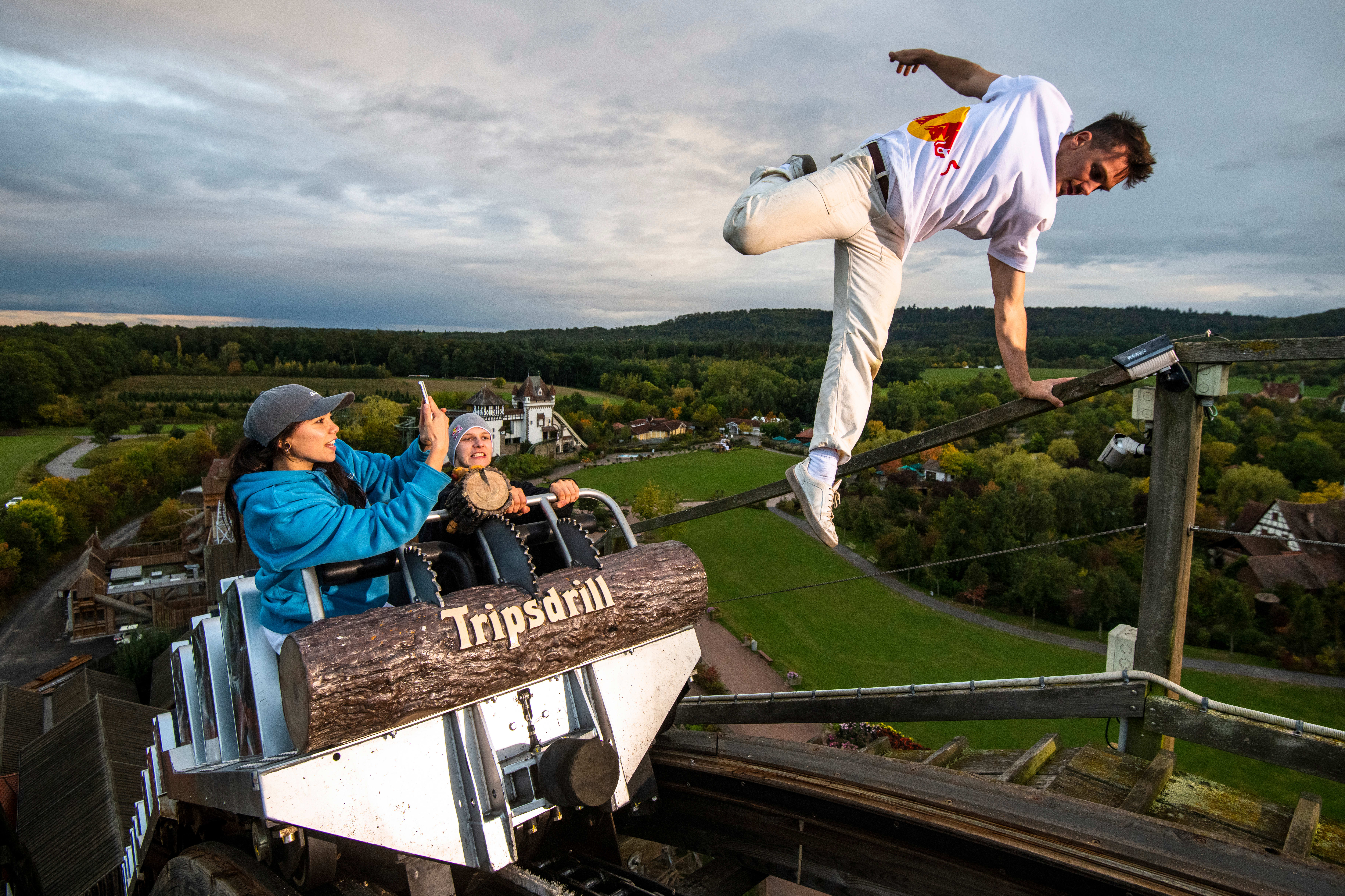While an amusement park is usually reserved for families, Germany's Tripsdrill theme park offers Jason Paul and co the ideal setting for a first-class parkour session.