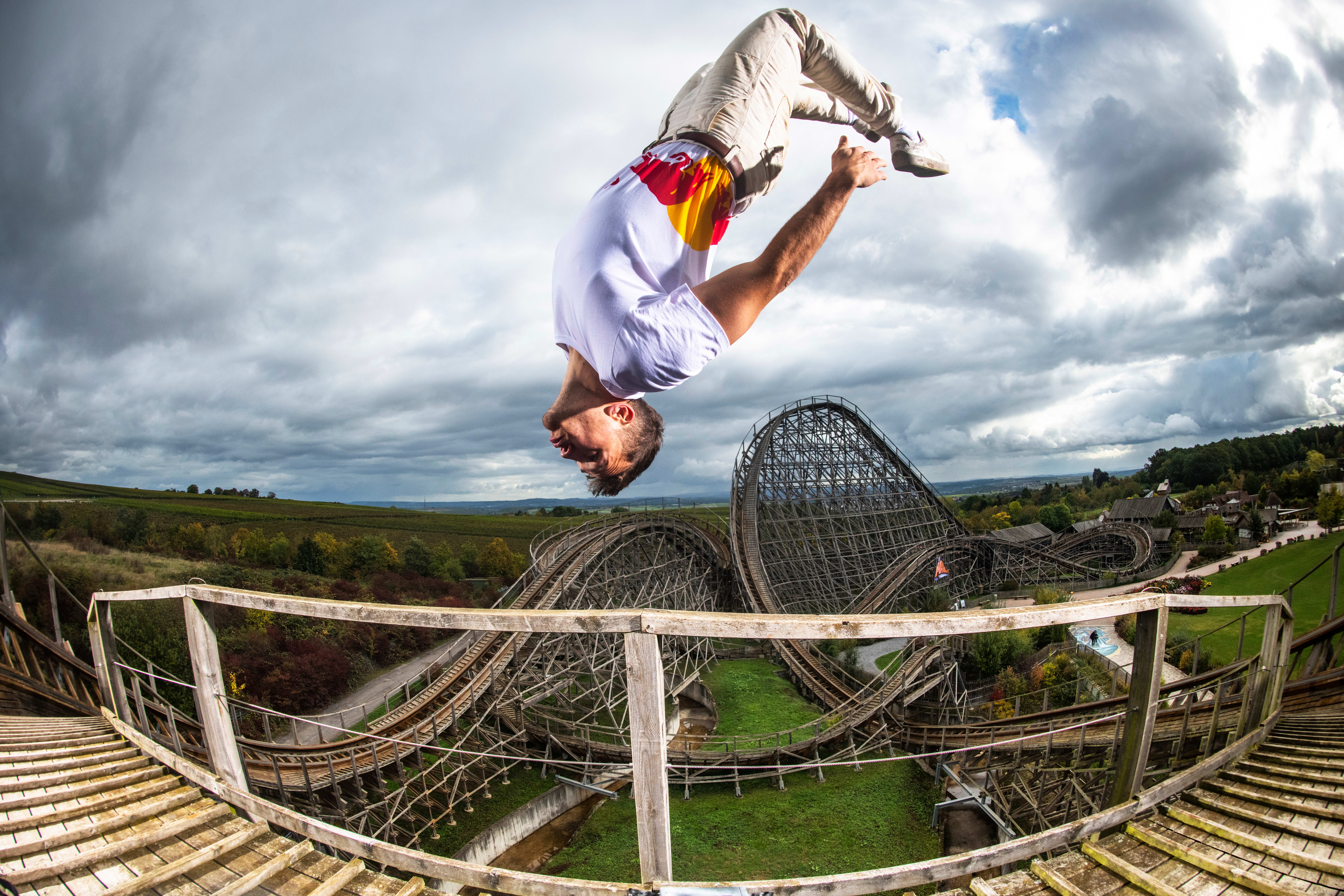 Click on the video in the player above to see the trio putting their freerunning abilities to the test like never before as they turn the framework of the famous Mammut roller coaster into their own parkour playground. Also, scroll down to see a special action edit of the show!