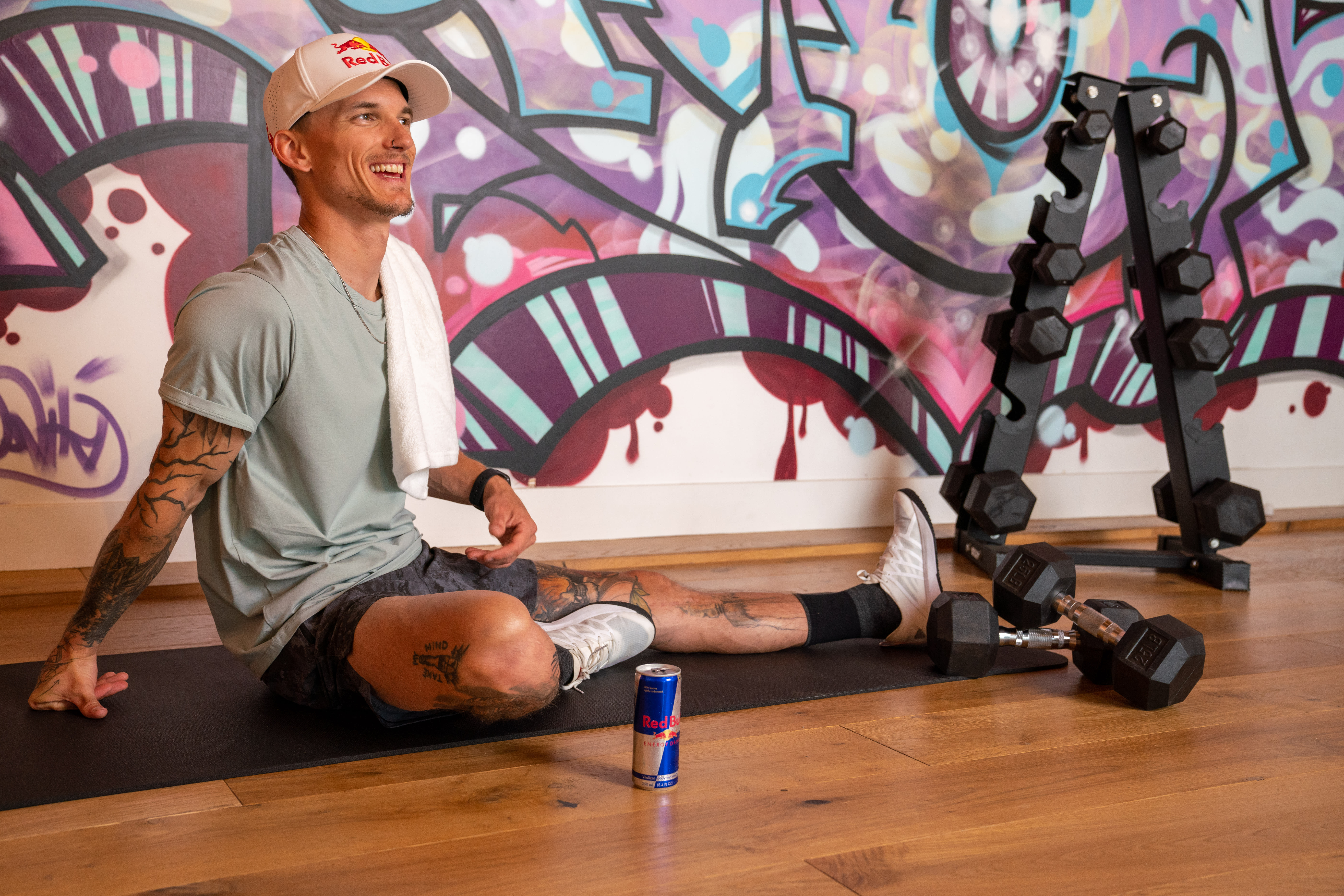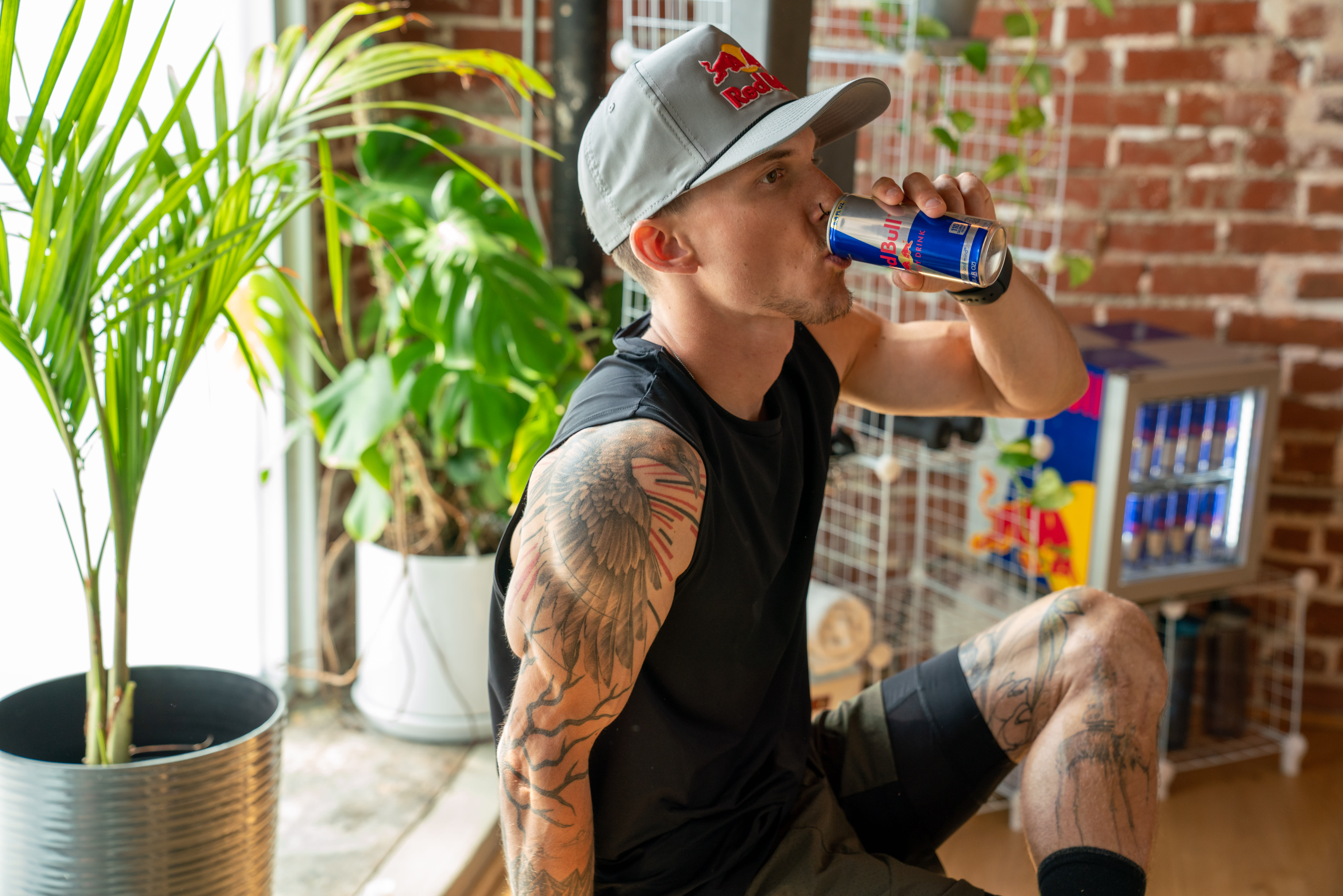 Gravel biking is just one of the things that’s helped Collinson to keep a good mental space throughout his most recent injury. Growing up in the mountains meant that Collinson had many ways of getting active that felt fulfilling and balancing to him. But at the core of it, just being able to move his body was what Collinson found most helpful. “I couldn’t do much and I hate the mindset of saying I can’t do things. I just try and find the things I can do. But there were so few of them that it was pretty dreary. So, the first time I could go for a walk outside, just like around the block, I was like, ‘Oh my gosh, this is the best thing ever,” said Collinson. Looking at the time he has in a day and trying to use it as much as his body will allow him is one approach he's taken. He’s also learned how to get as comfortable as possible in the gym and find creative new ways to move his body outside his detailed workouts. Collinson considers himself a naturally motivated person, but like anyone, has off-days. Anything to get his blood flowing makes all the difference, even on those dreary, unmotivated days. If getting the blood flowing isn’t enough, a Red Bull Energy Drink usually does the trick in giving wiiings to Collinson’s workout.