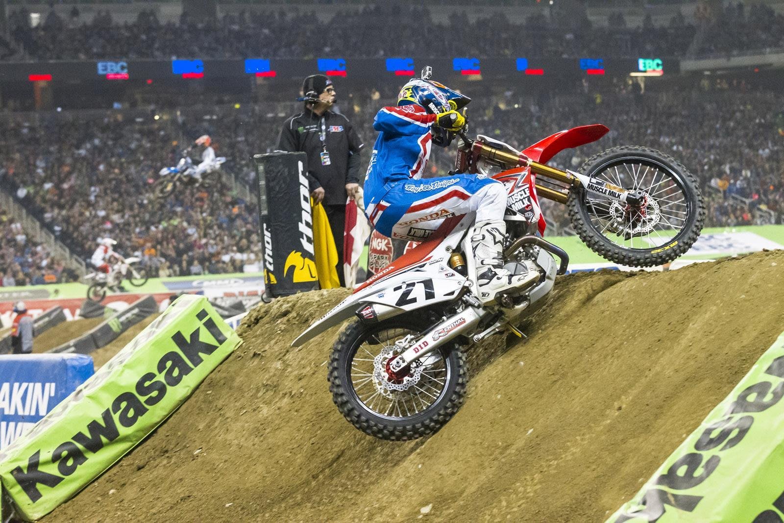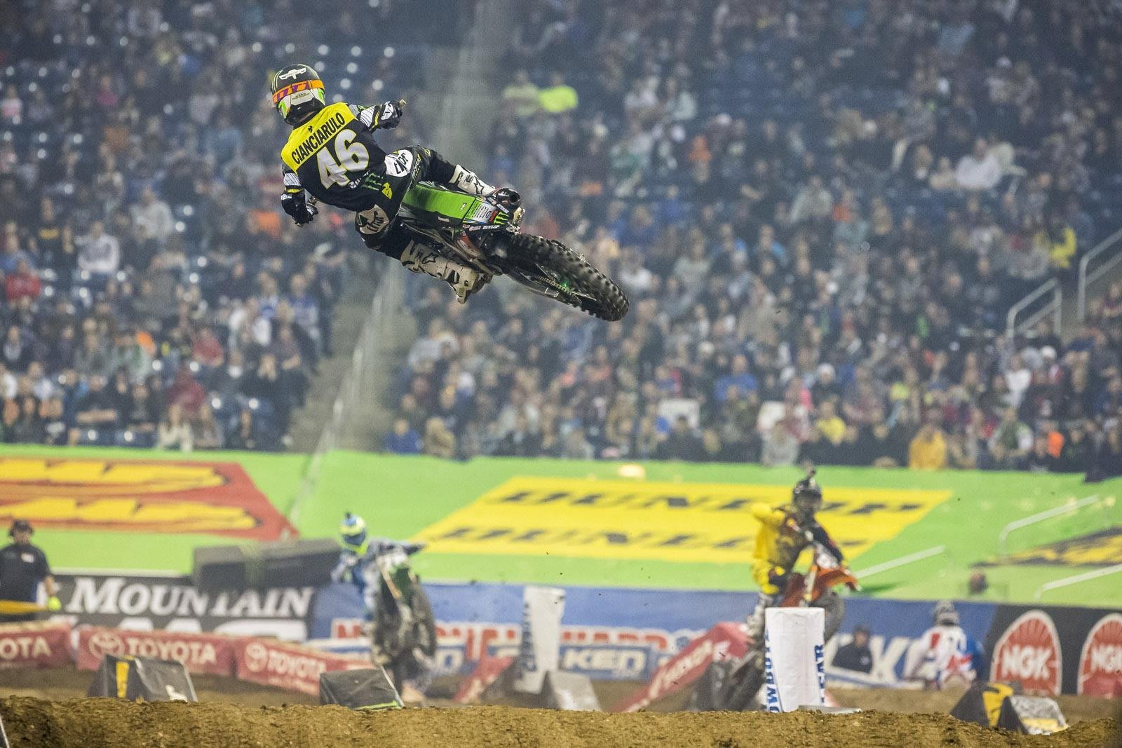 On Saturday night, Detroit’s Ford Field hosted round 11 of the AMA Supercross series. The Michigan fans packed the stadium and the big names turned up as the season took another step toward the finale in Las Vegas in early May.