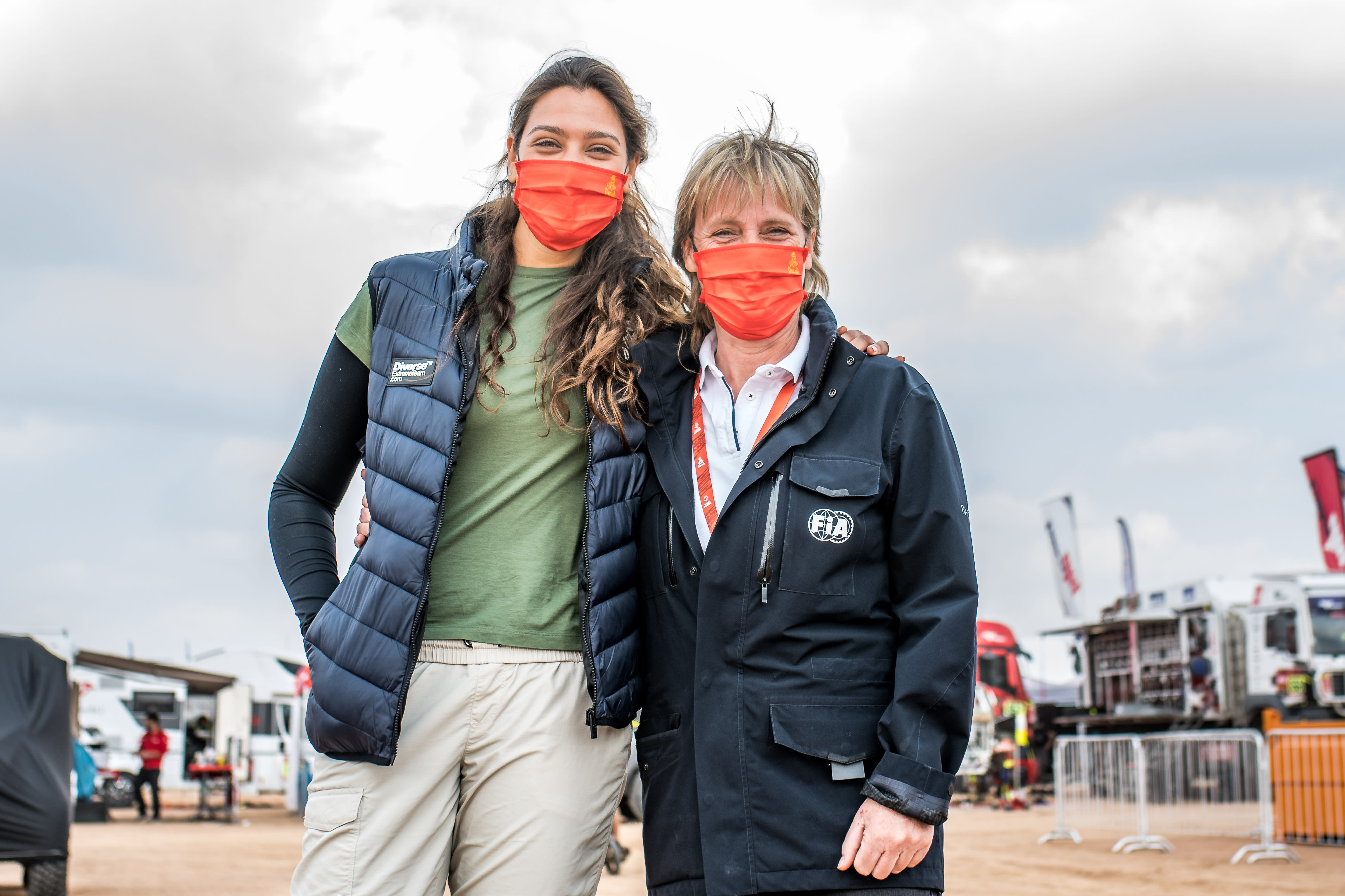 While Kleinschmidt provides inspiration to off-roaders in the Dakar convoy such as Gutiérrez and Sanz, she's also in touch with ambitious newcomers to show them what's possible. Among those watching Gutiérrez and Sanz from the sidelines this year is female Saudi Arabian racer Dania Akeel.