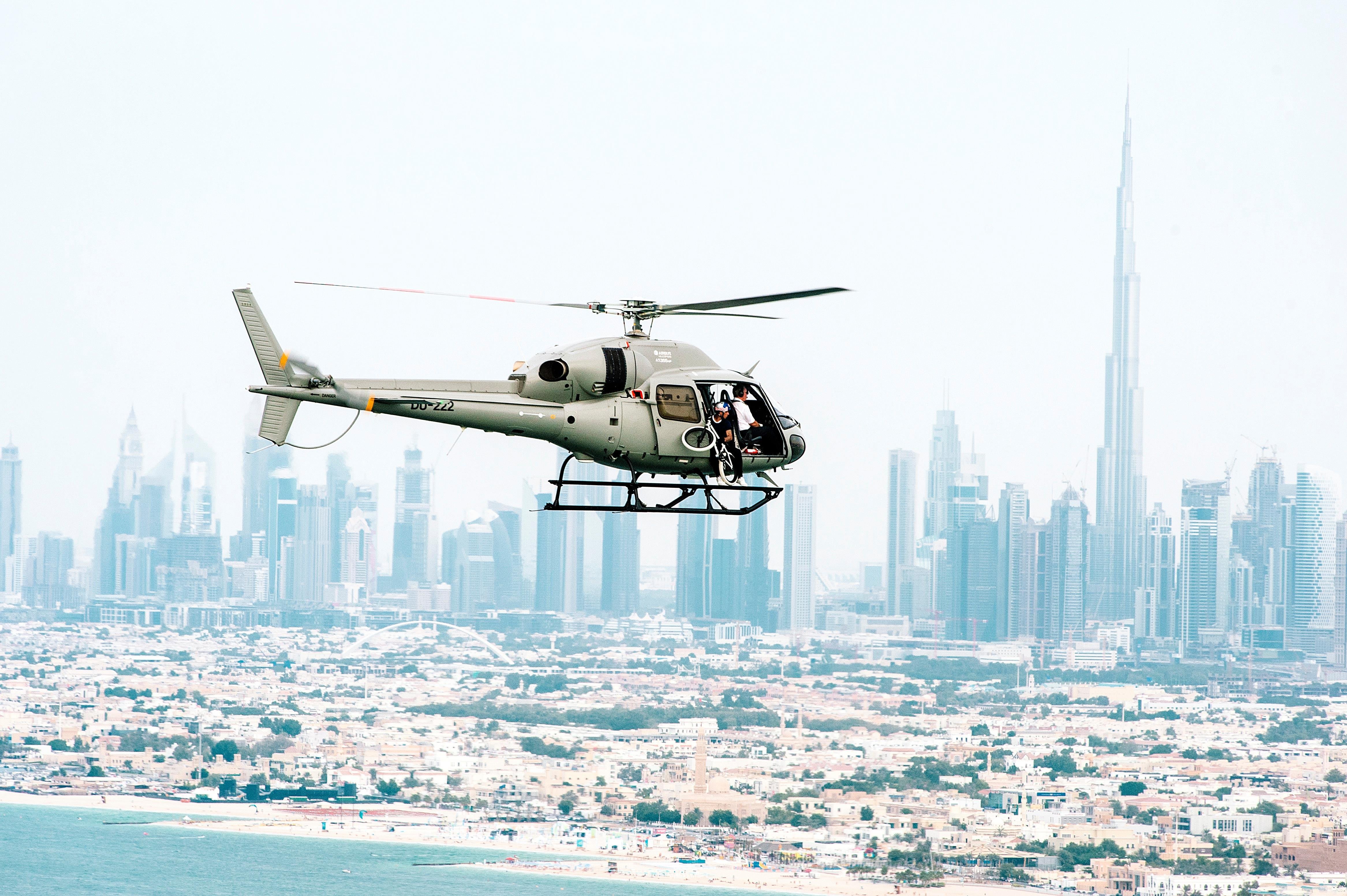 The video opens with the helicopter flying over the Burj Al-Arab and you’re waiting to jump out with your bike. How did that come about?