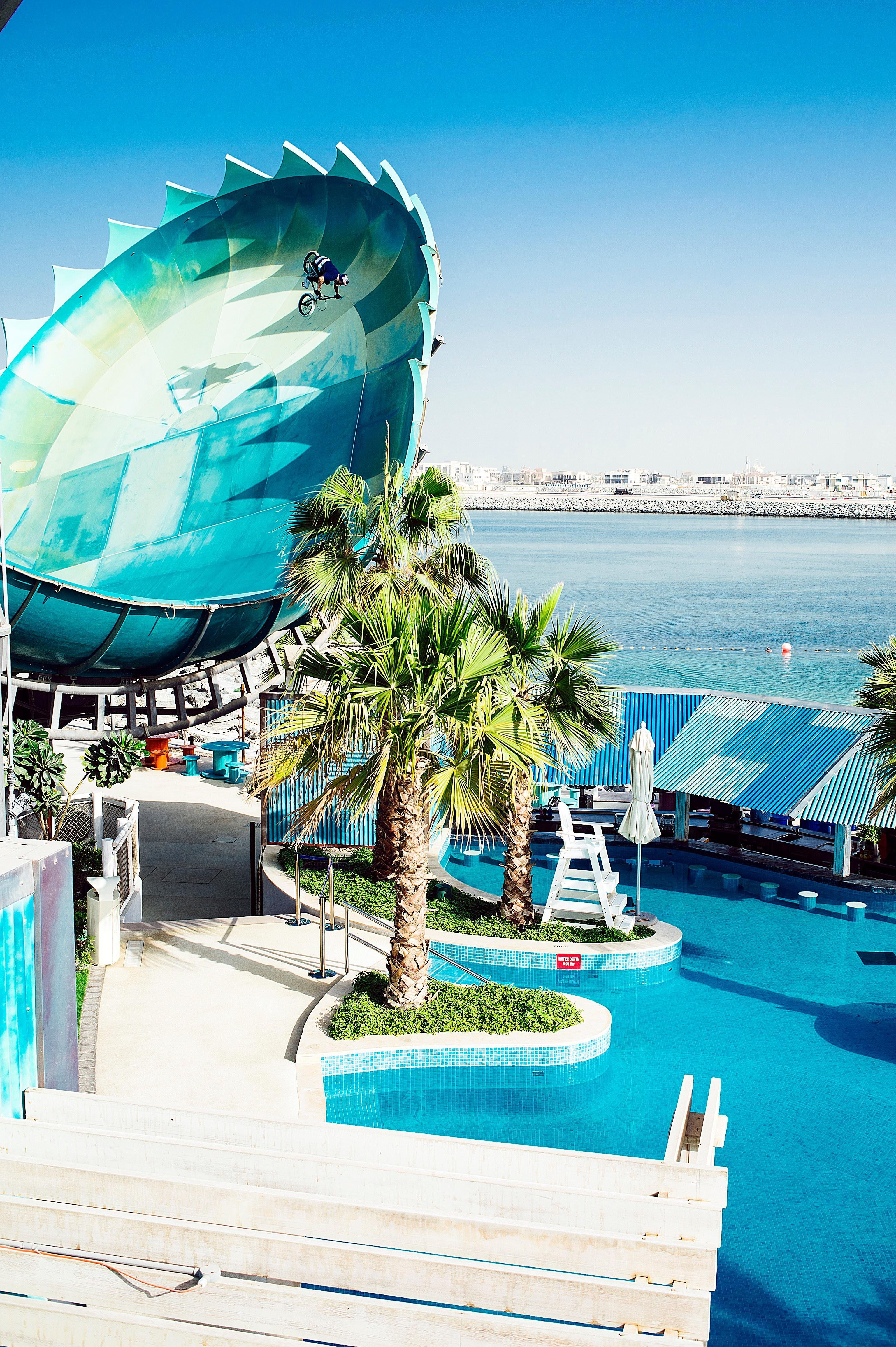 That was a dream come true. They have the best water parks in the world in Dubai, so it was an absolute honour. The cool thing is that they can turn the water off when they want to. Anything we wanted to do was no problem. The slides were massive, and also so high up that I was scared of going over the side. I knew I wouldn't, but like I said, I'm scared of heights.