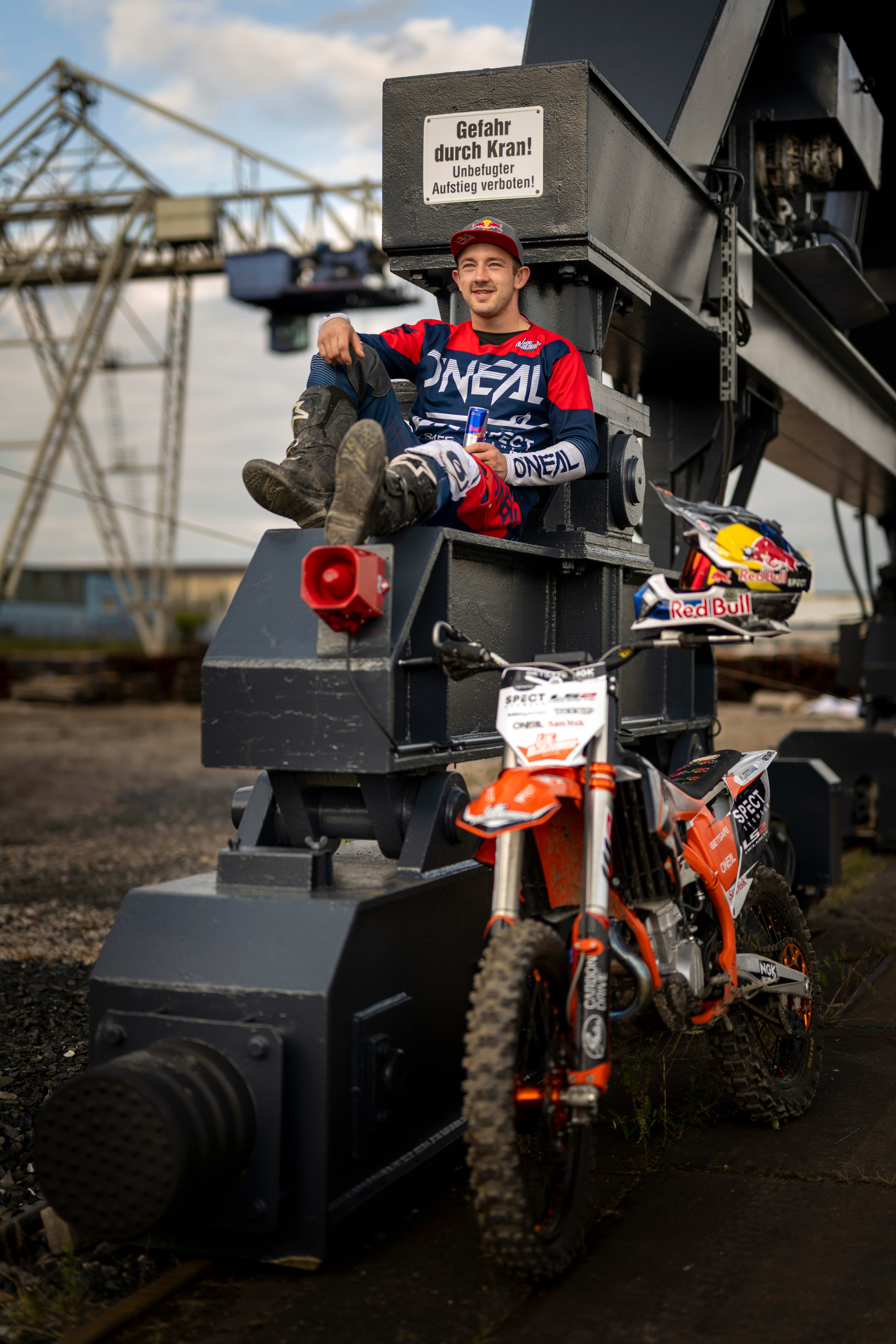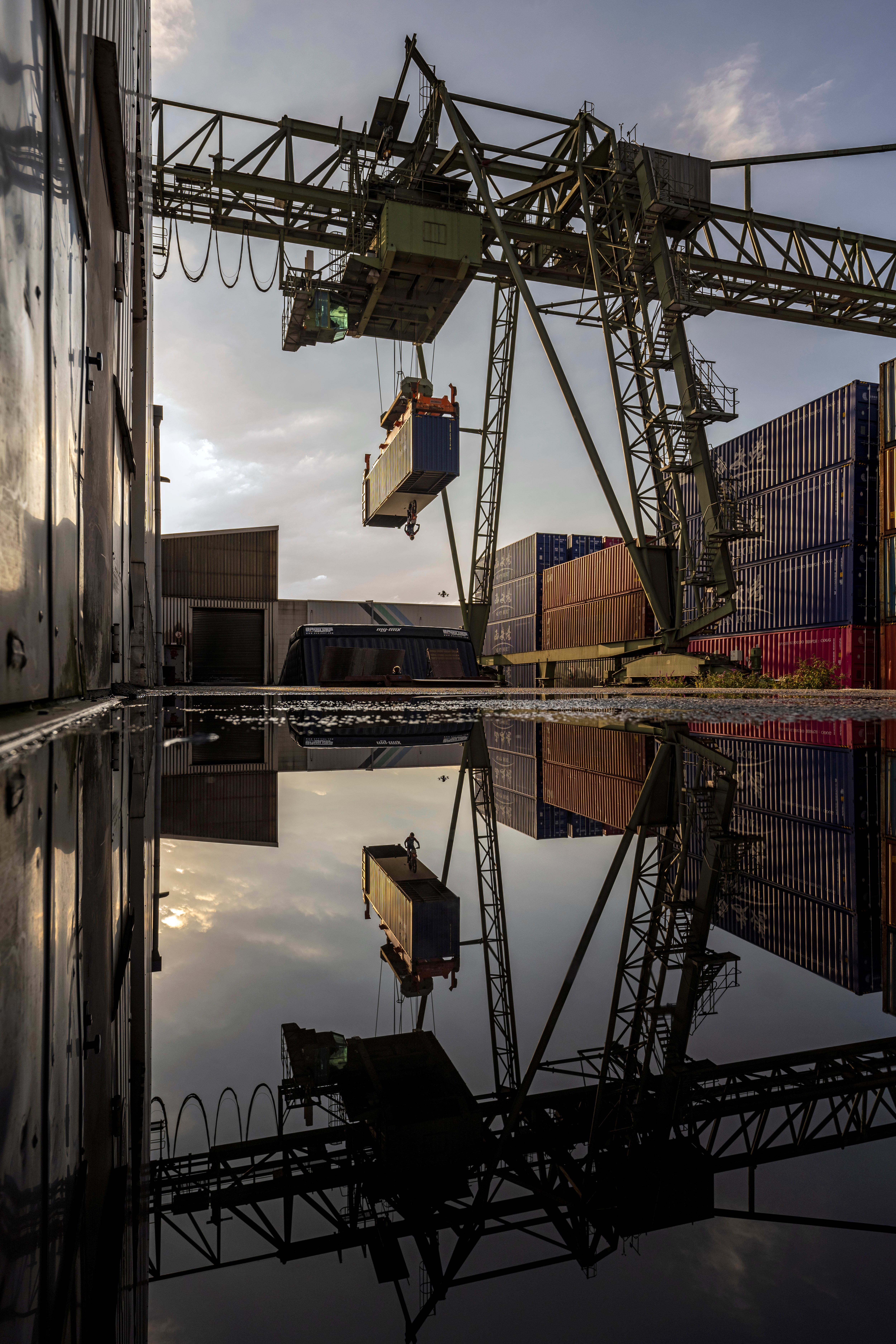 Luc Ackermann made tracks for Duisburg, the world's largest inland port, and turned the Rhenus logistics stockyard, filled with containers, cranes, forklift trucks and tonnes of aggregates, into his personal FMX playground. The German rider incorporated the never-before-seen tricks with some stunning stunt riding and new takes and on existing FMX tricks.