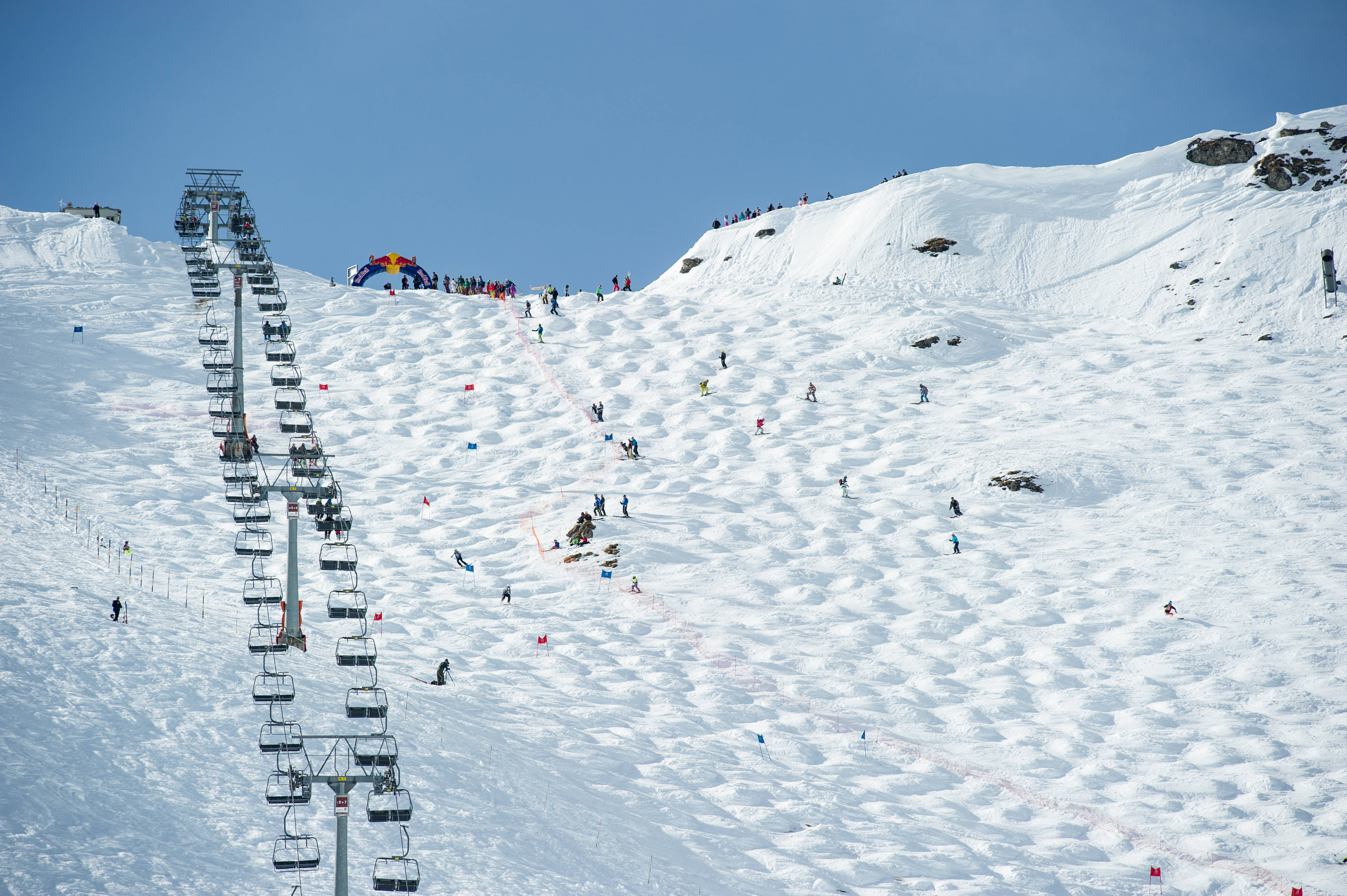 Further afield, the Swiss Wall (Chavanette), Portes du Soleil, straddling Switzerland and France, is another holy name in mogul skiing. It's an un-groomed course, meaning gigantic moguls are allowed to amass. Coupled with a massive vertical drop and a steep average grade, you have a recipe for a must-visit location.