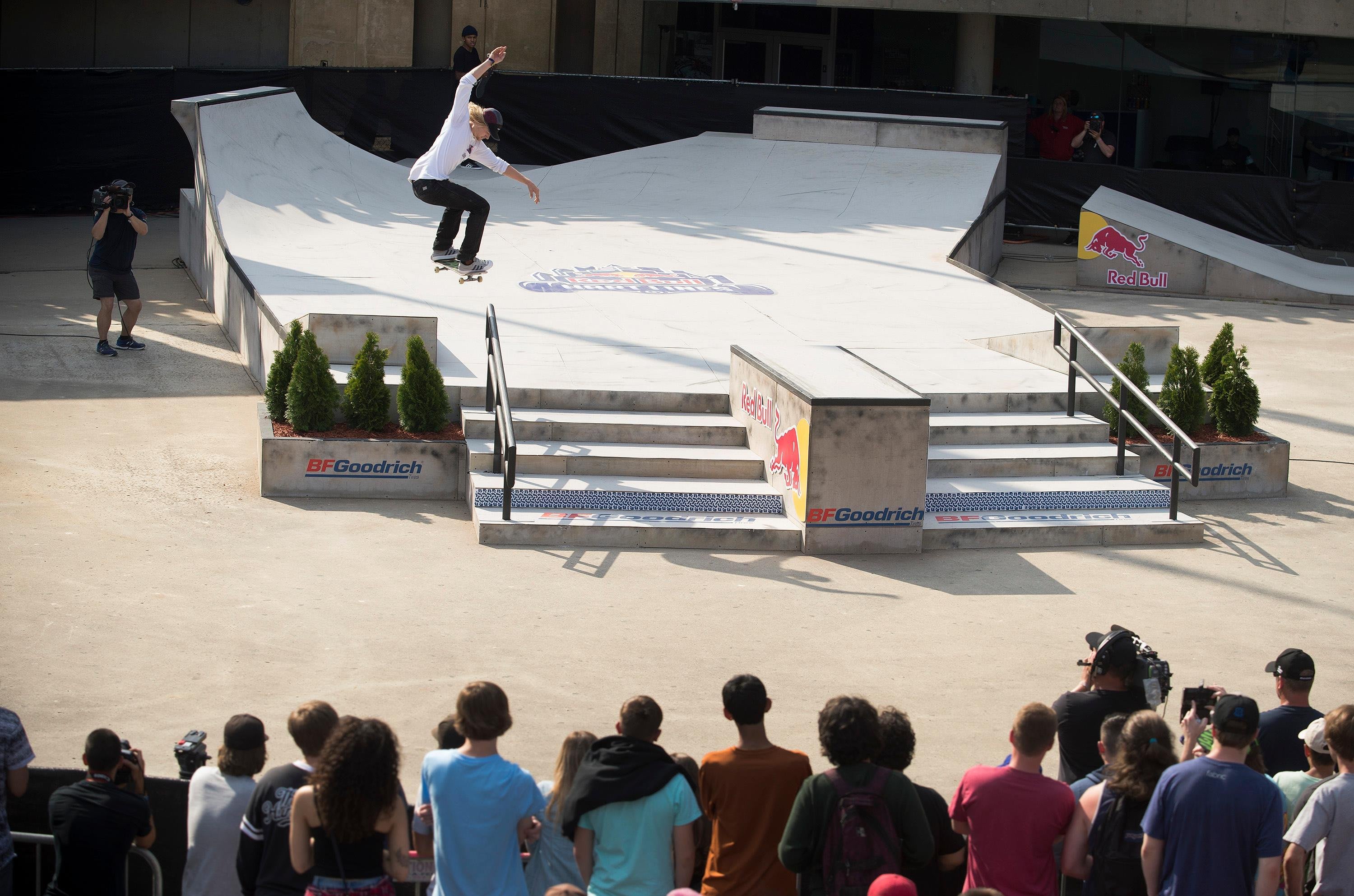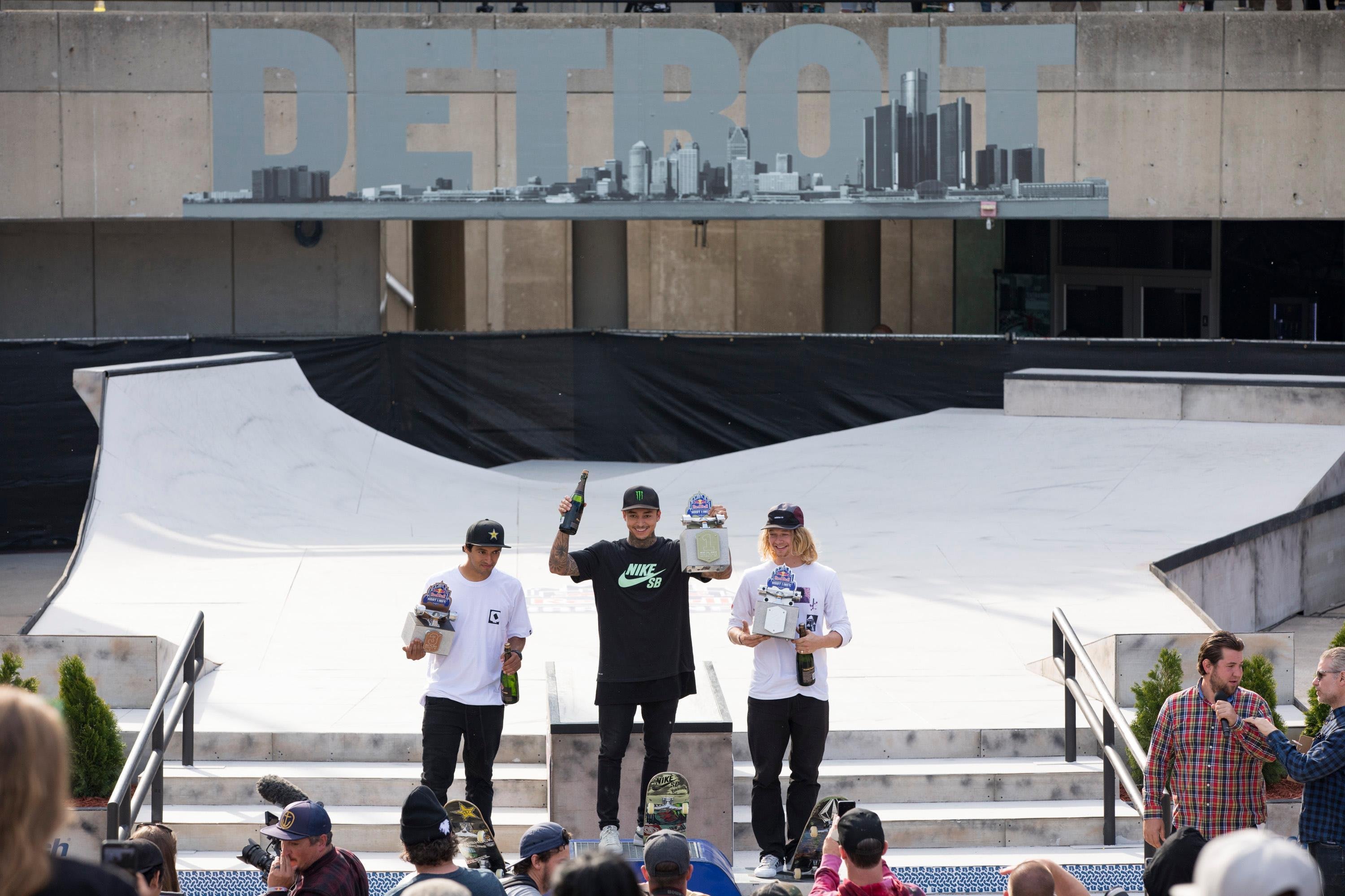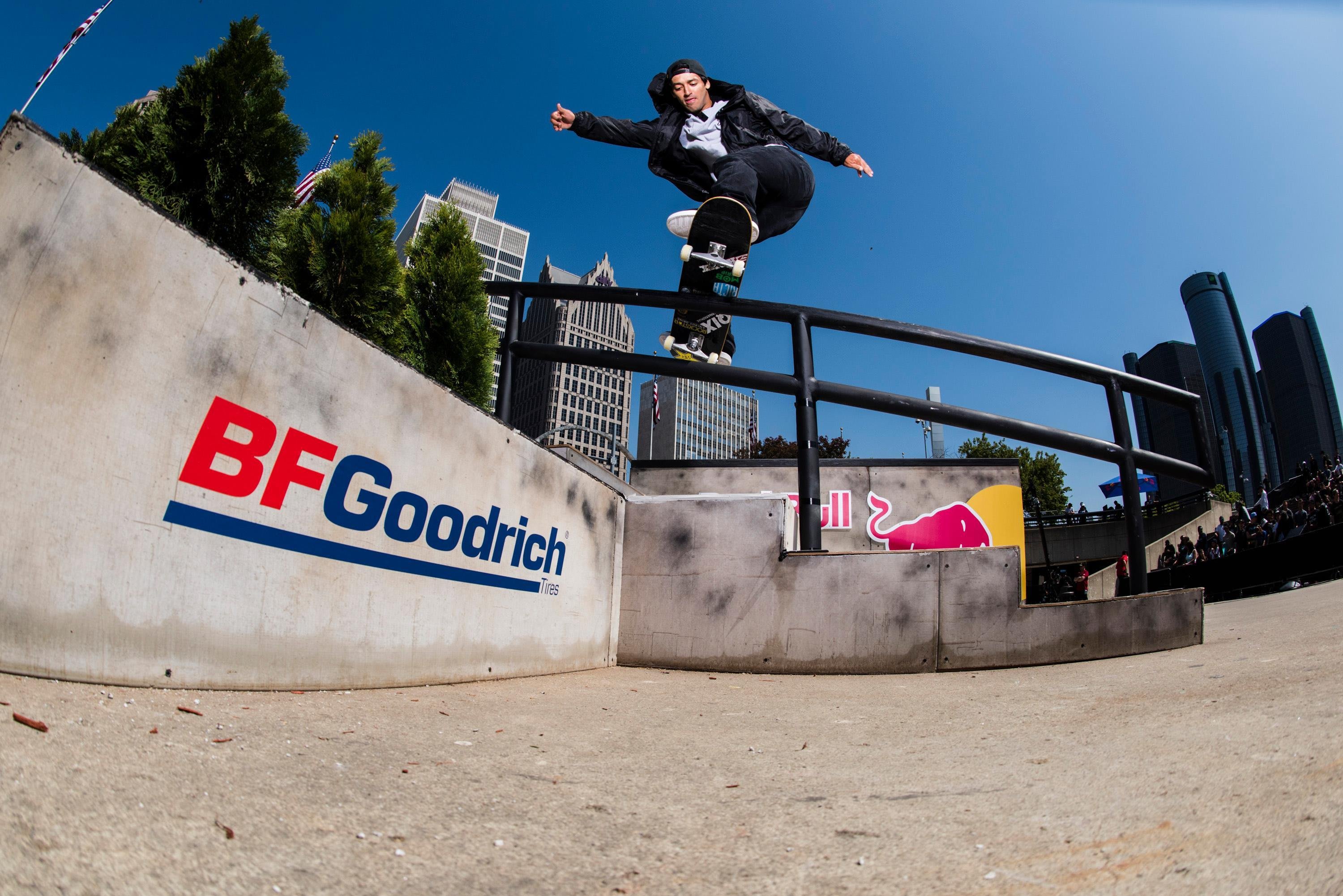DETROIT, MI —Nyjah Huston just took down Red Bull Hart Lines for the second straight year. Despite course changes with reduced feature size, the emphasis on technical, fast skating was stronger than ever. Huston rose to the challenge and managed four nearly perfect runs from top to bottom, setting the bar in variety, difficulty and even time — consistency to the teeth.