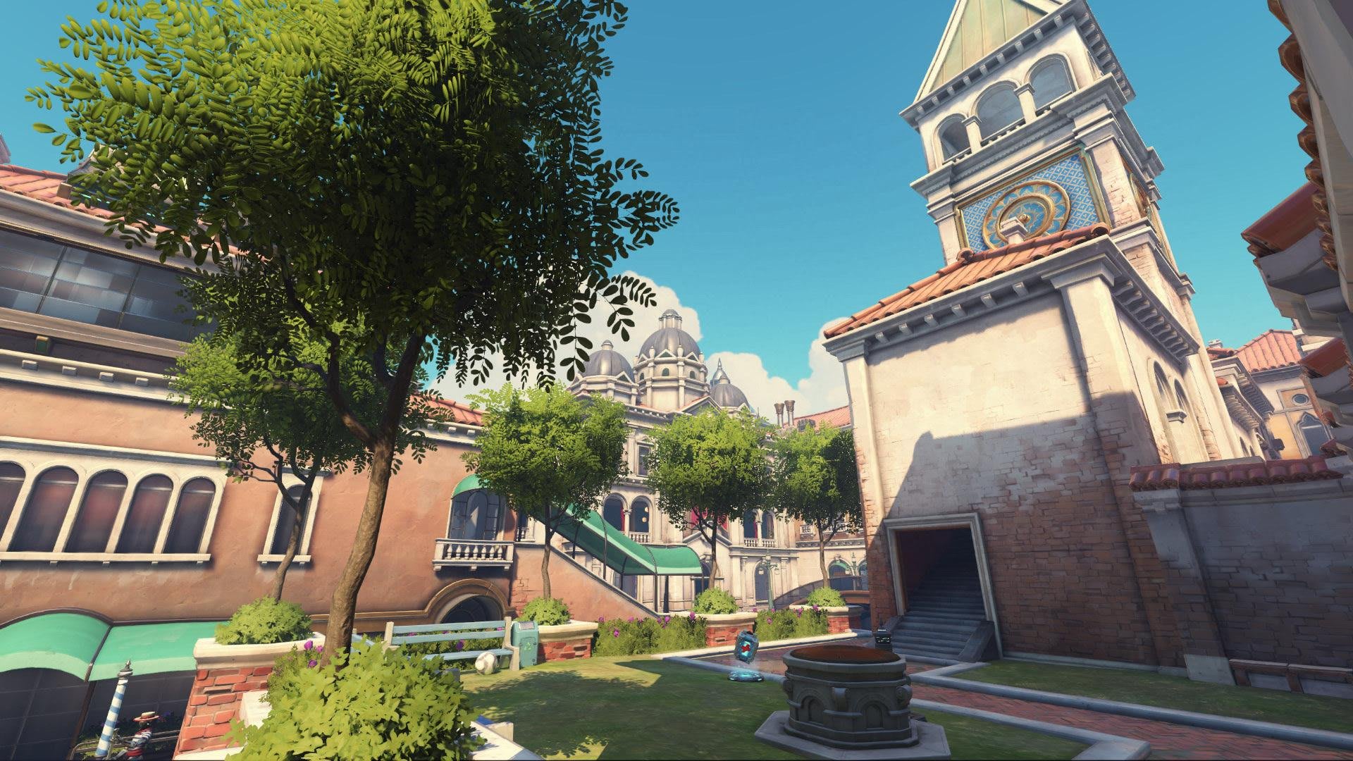 The map is set in Italy, in a city that strongly resembles Venice, thanks to the waterways that run through the map containing a boat load of gondolas (see what we did there?). The central canal in the middle of the map creates some very interesting choke points on the sole bridge that crosses this river, and creates some opportunites for hilarious boops, as the water is deadly to all. The rest of the map features some lovely Italian Renaissance architecture, and lots of interesting rooftops that make it a delight for Pharah players to fly over.
