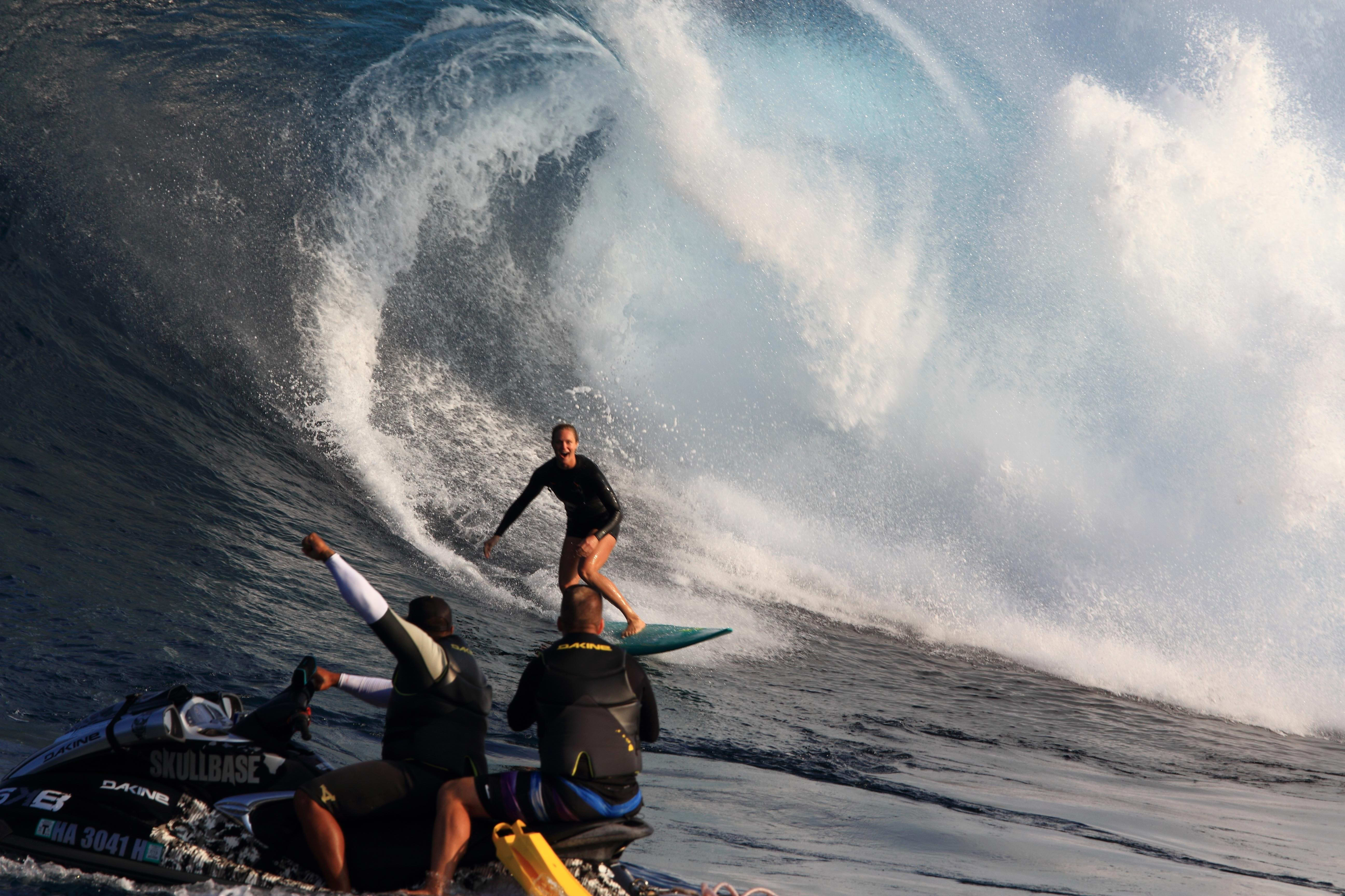 That day at Jaws? It was much cleaner and slightly smaller than the day before. Sean, KK and I got out there early the next day on the ski. Keala, along with Shane Dorian, Greg Long, Ian Walsh and Albee Layer, has always been someone I look up to out there, I just love surfing with her. The lineup was insanely crowded and not very consistent. I was on the ski for about half-an-hour before jumping in the water. After sitting in the lineup for about 20 minutes talking to friends, that wave came to me. I was in the right spot and couldn't have done anything wrong. It was just perfect and let me do what I've dreamed about for years. The rest is history. That was the best day ever!