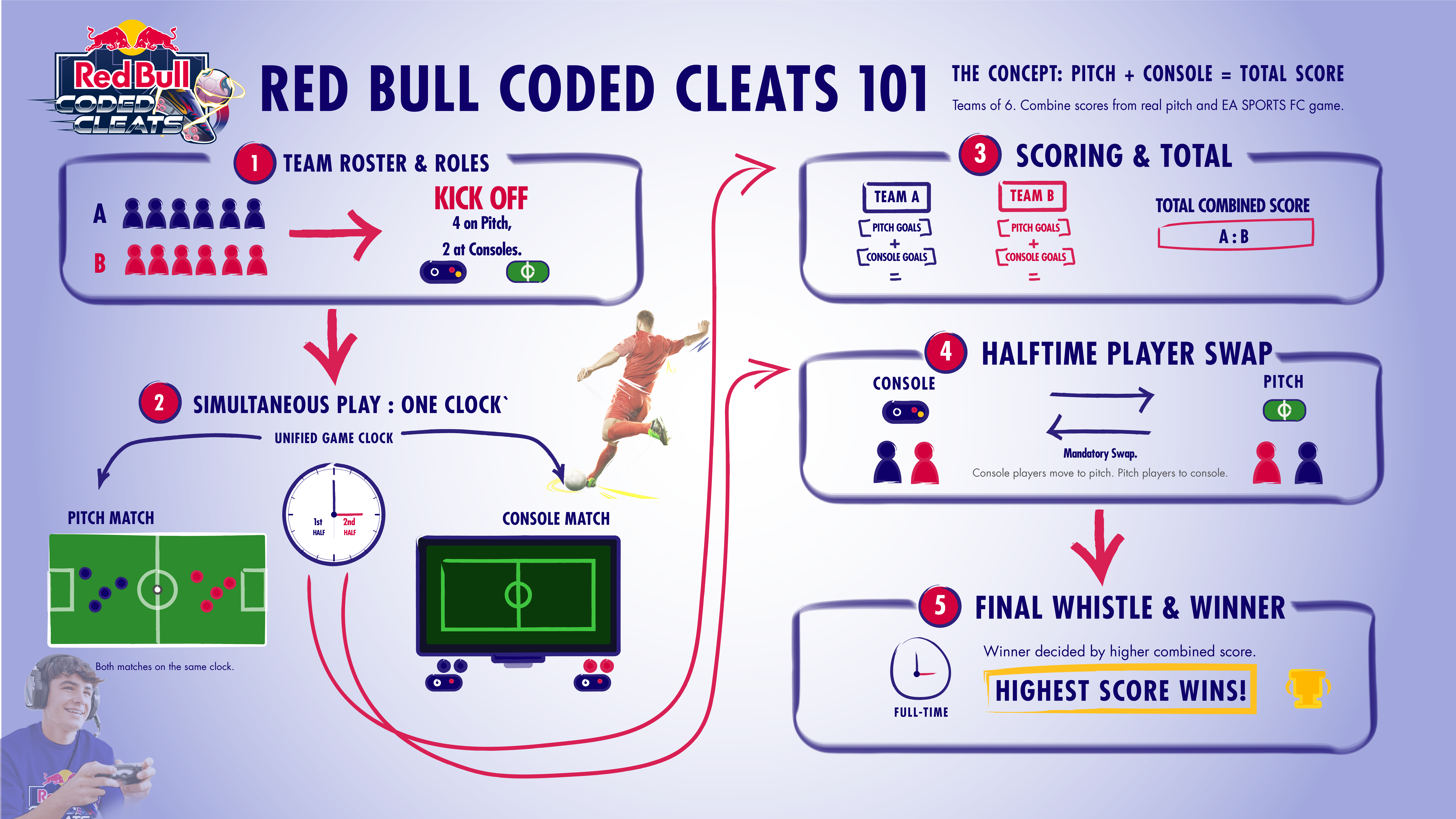 The result is a fast-paced, strategy-driven event where teams must perform both on the pitch and on the controller - at the same time.