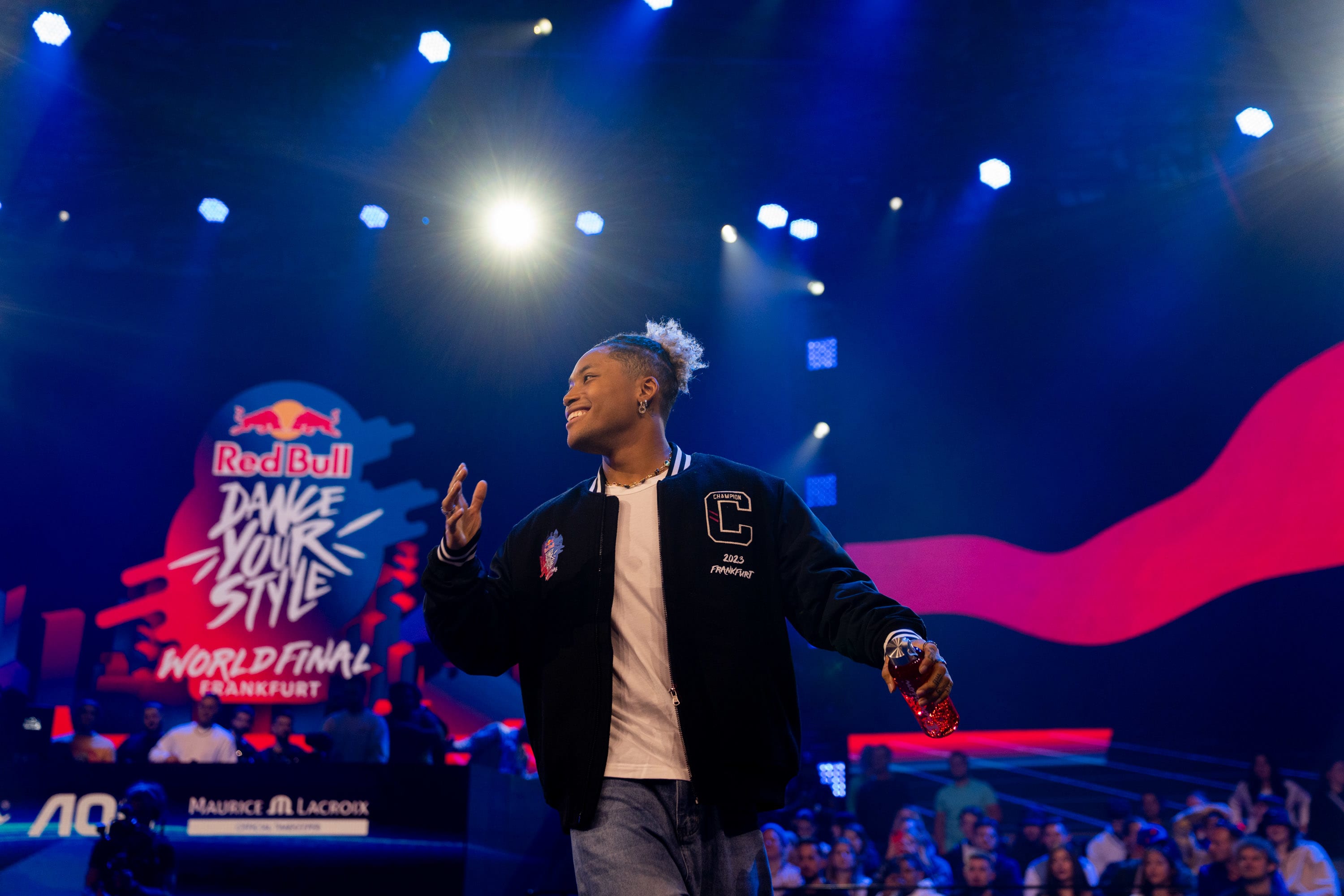 This South Korean dancer took the win after defeating Gio from the Netherlands in a showstopping final in Frankfurt, Germany. The trophy was presented by last year's champion, THE D Soraki, who won Red Bull Dance Your Style in Johannesburg, South Africa, in 2022.