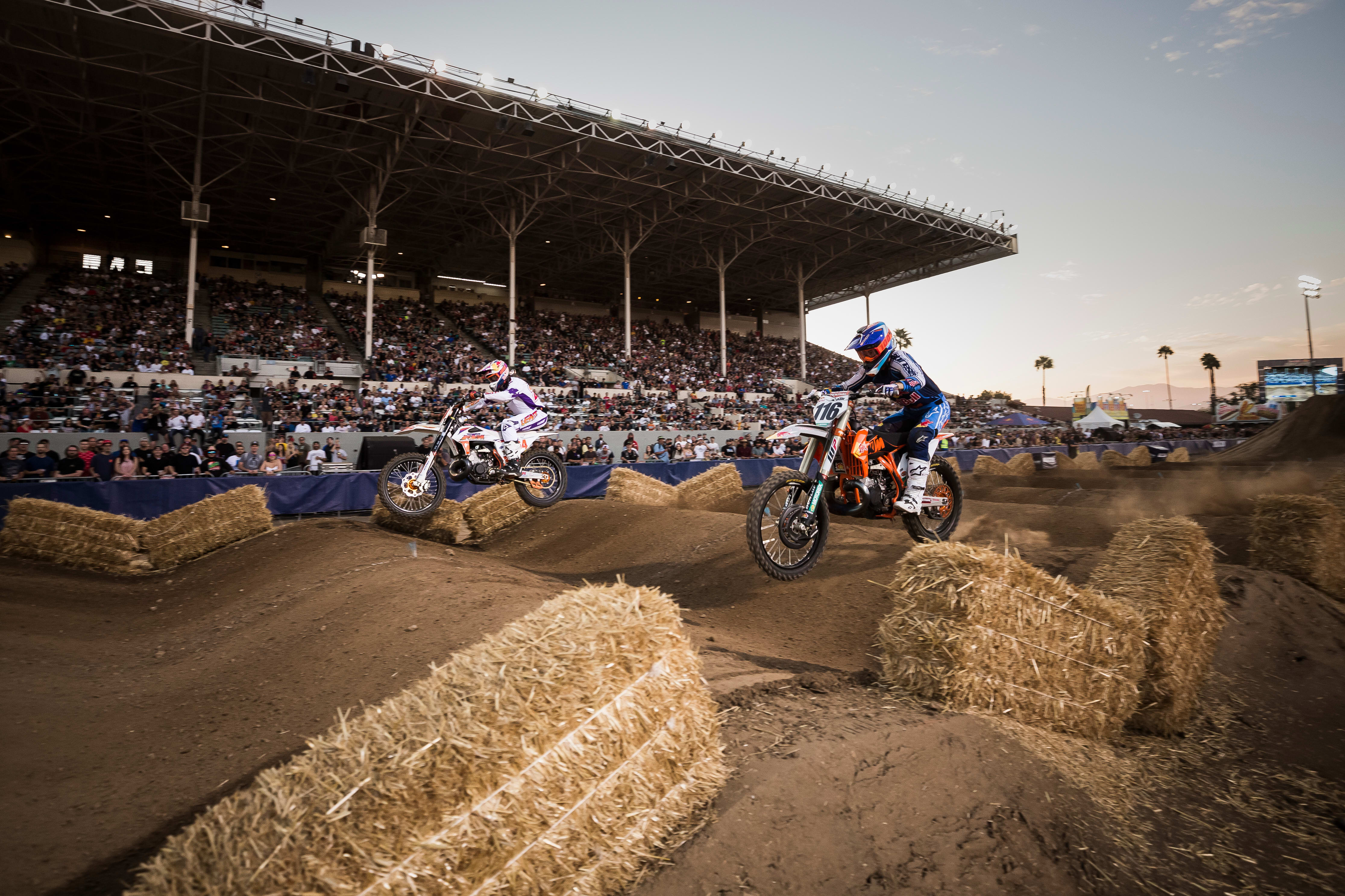 Red Bull Straight Rhythm is headed to the beach after a two-year-hiatus. Thirty-two riders on 2-strokes go head-to-head racing on a half-mile rhythm course on the sandy coast of Huntington Beach.