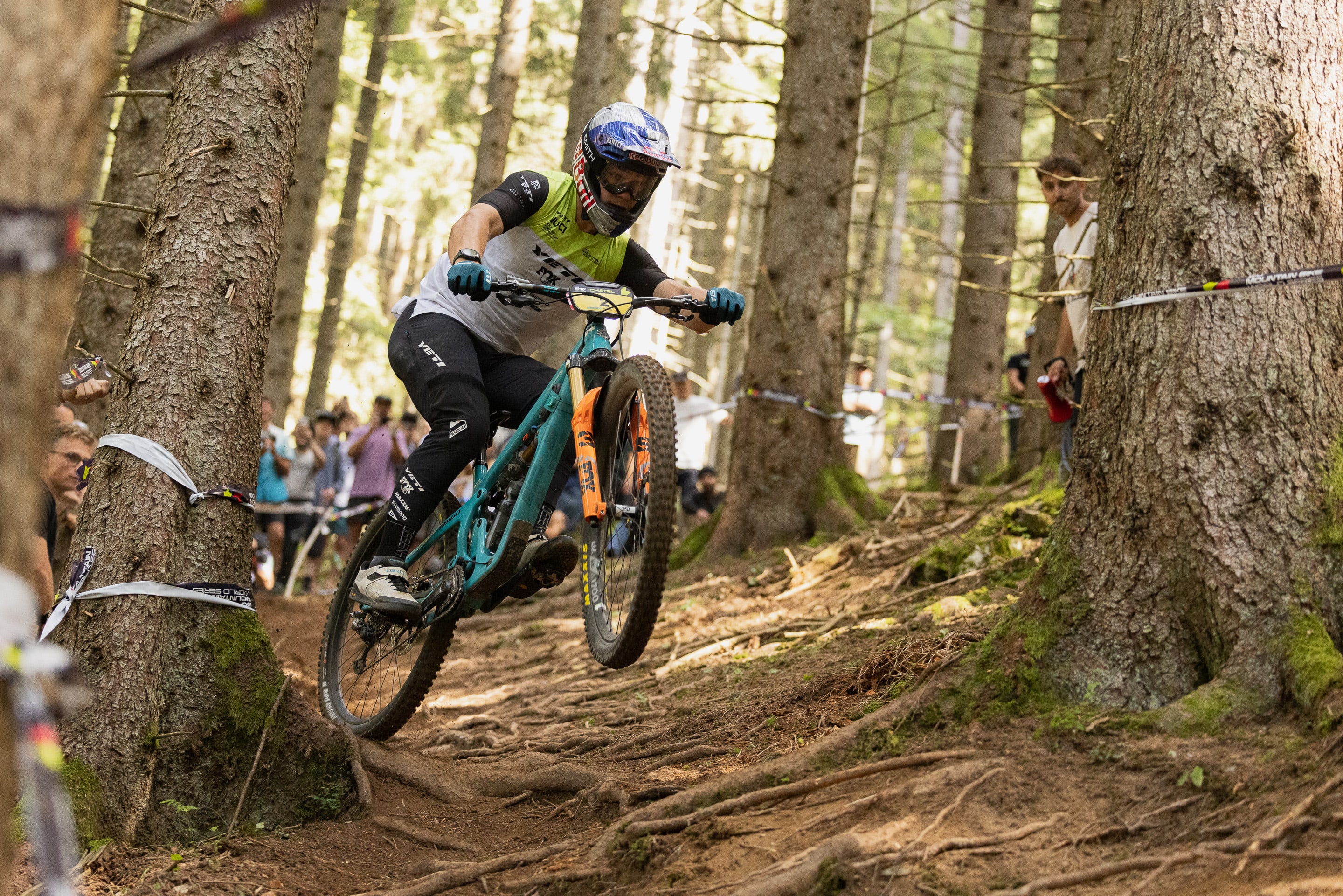 Simply winning a UCI Enduro race is a feat in itself. Enduro courses demand the stamina of an XC racer and the tactfulness and power of a DH racer. The race is spread across multiple stages—typically five to eight tracks—with racers vying for the fastest times each time they drop into a descent. The cumulative time from all stages determines the victor. With long days in the saddle, massive climbs between stages, and back-to-back courses that could be stand-alone downhill tracks, these races challenge the most skilled and decorated racers.