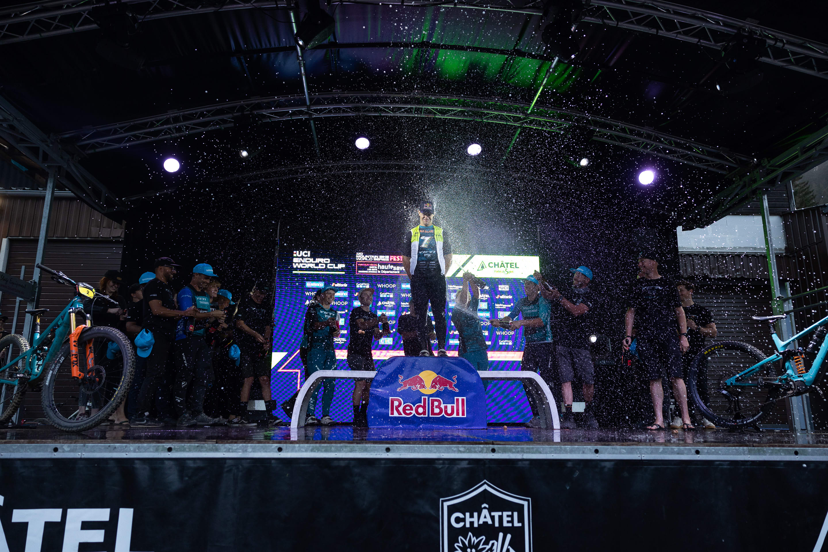 Going into the seventh and final round of the UCI Enduro World Cup in Châtel, France, Rude looked poised to take home the coveted trophy. But even with the 238-point lead, Rude treated each stage as a fight for the title, knowing that nothing is guaranteed in the volatile world of enduro racing. It was a new venue with seven stages and a mix of terrain. A tough start on stage one heightened the drama, putting Rude in sixth for that stage. He needed at least an overall 5th-place race finish to reach his goal, and he started to feel the pressure. After finishing second in the all-around consecutively for 2021 and 2022, Rude set his sights on carrying the championship trophy again.