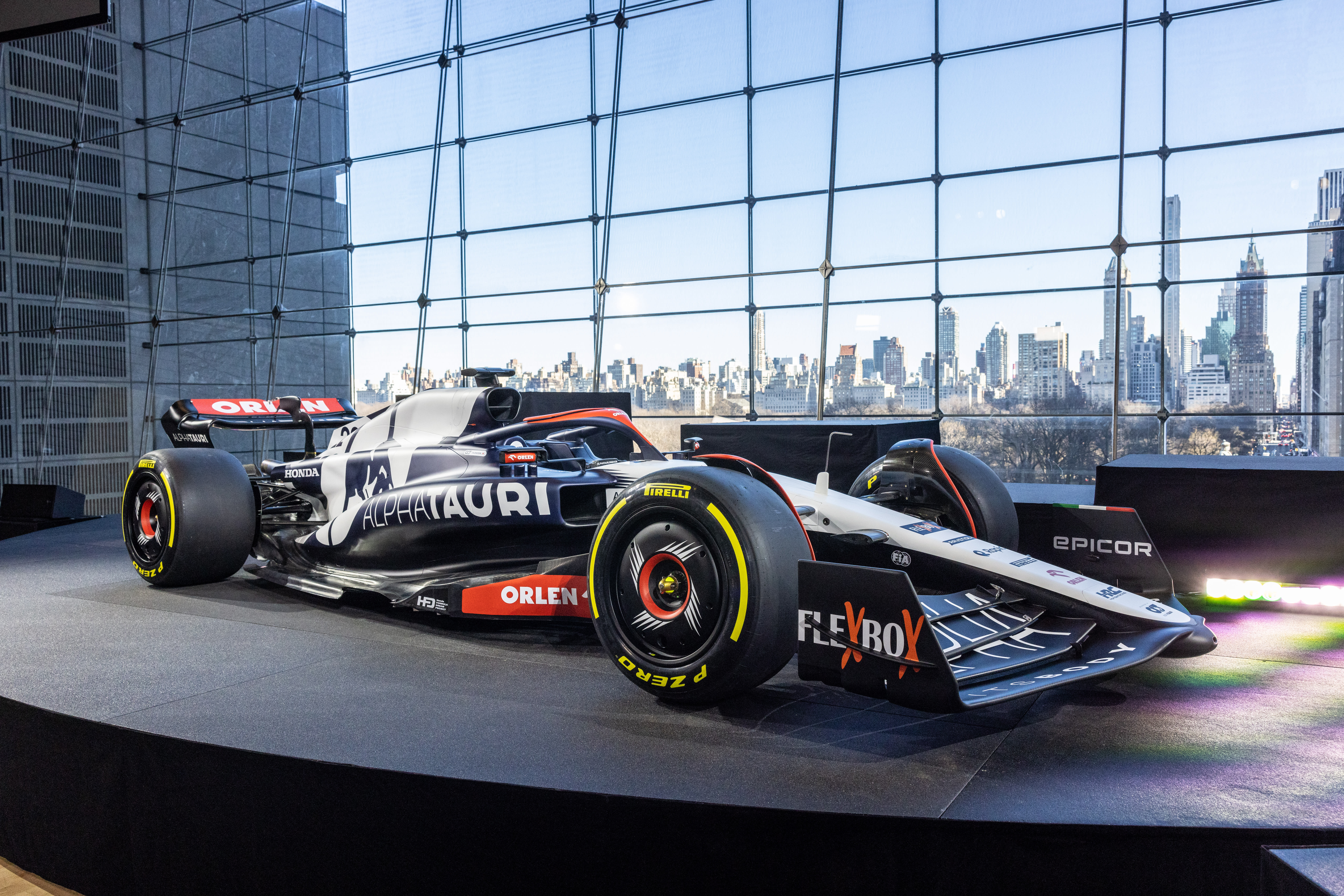 Fashion meets Formula One in New York City as Scuderia AlphaTauri launches its 2023 car alongside drivers Yuki Tsunoda and team newcomer Nyck De Vries at New York Fashion Week.