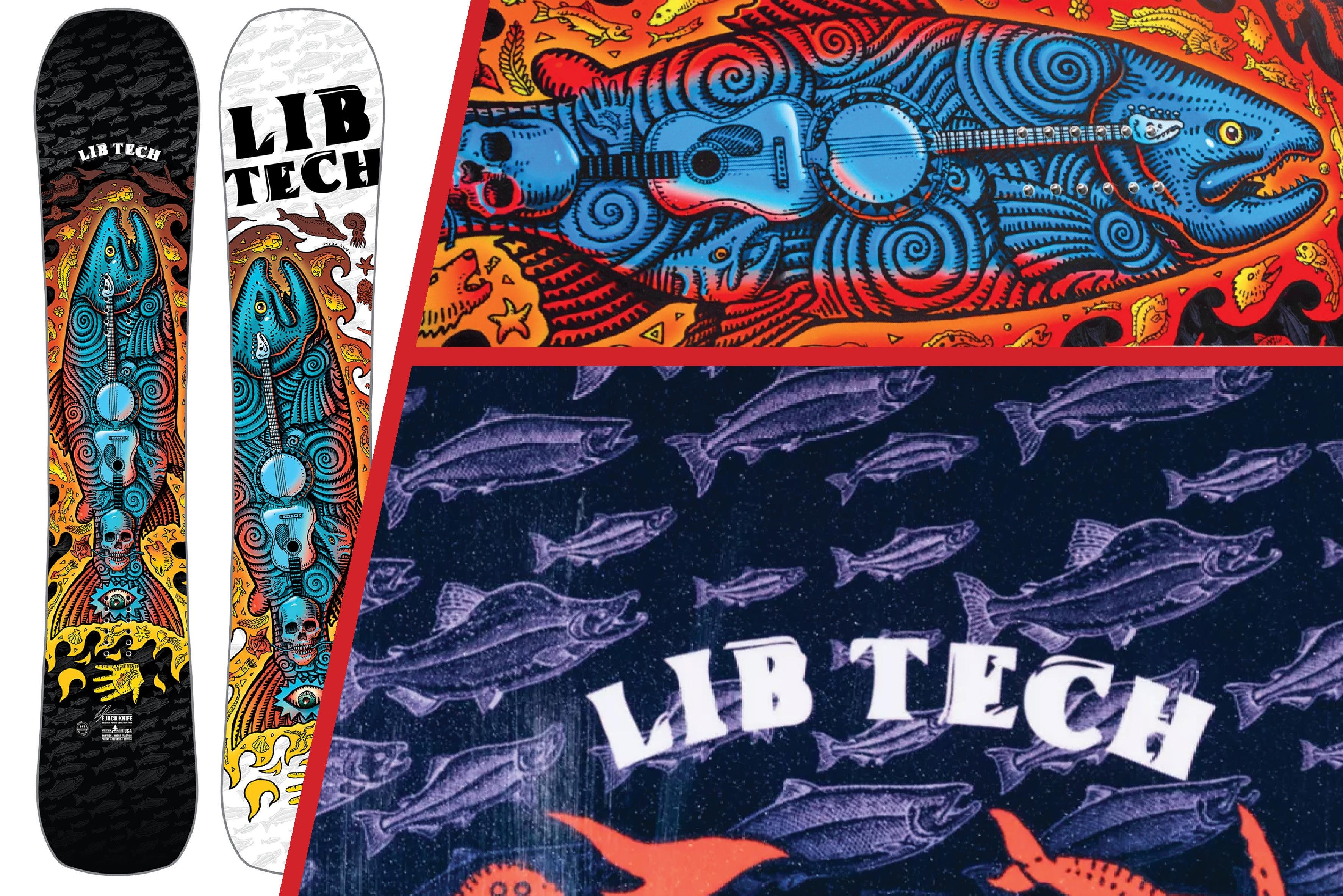 Eric Jackson's a big bearded, banjo pickin' powder powerhouse who's been representing Lib Tech his whole career. Just like his older brother John, Jackson's a diehard fisherman and this beauty features the fine art of iconic Alaskan artist Ray Troll, who shares E-Jack's obsession with the fishier pursuits in life. As for the board, it's designed for high velocity backcountry destruction, with a stiff-ish flex, wider, powder-friendly nose and Magne-Traction edges for supreme edge hold on the ice. Definitely a fine catch.