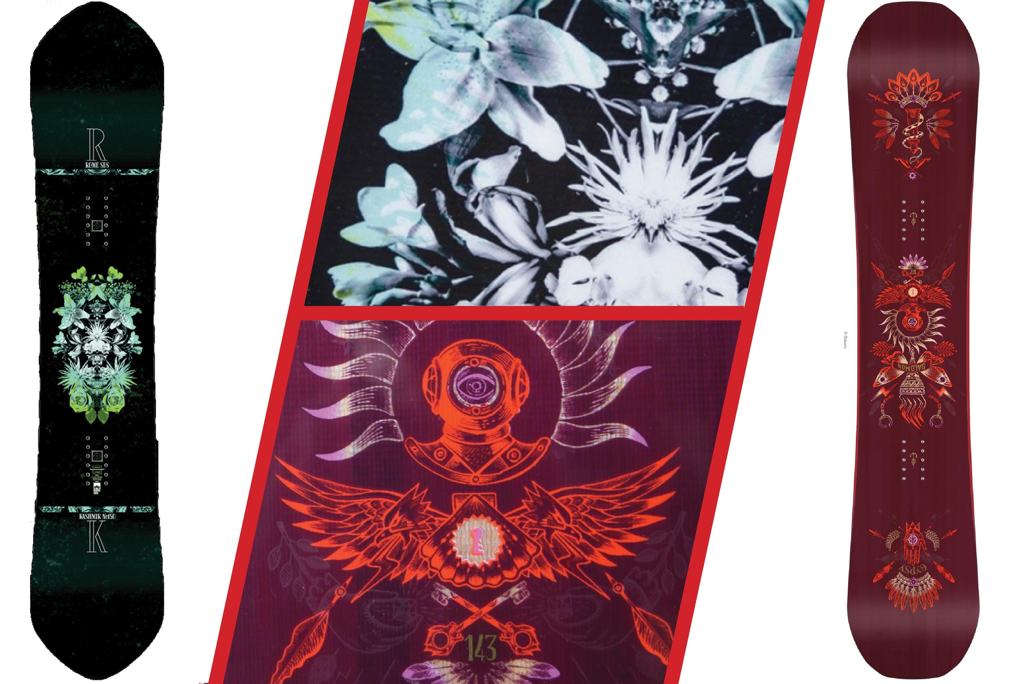 As with its elder sibling the skateboard, the art of snowboarding and art on snowboards are inextricably linked. While some obsess about carbon stringers, triaxial weaves and urethane sidewalls, others are more interested in the really sexy part of board design – the graphics. So, especially for the more aesthetically minded, here’s what caught our eye from the 2018 snowboard crop.