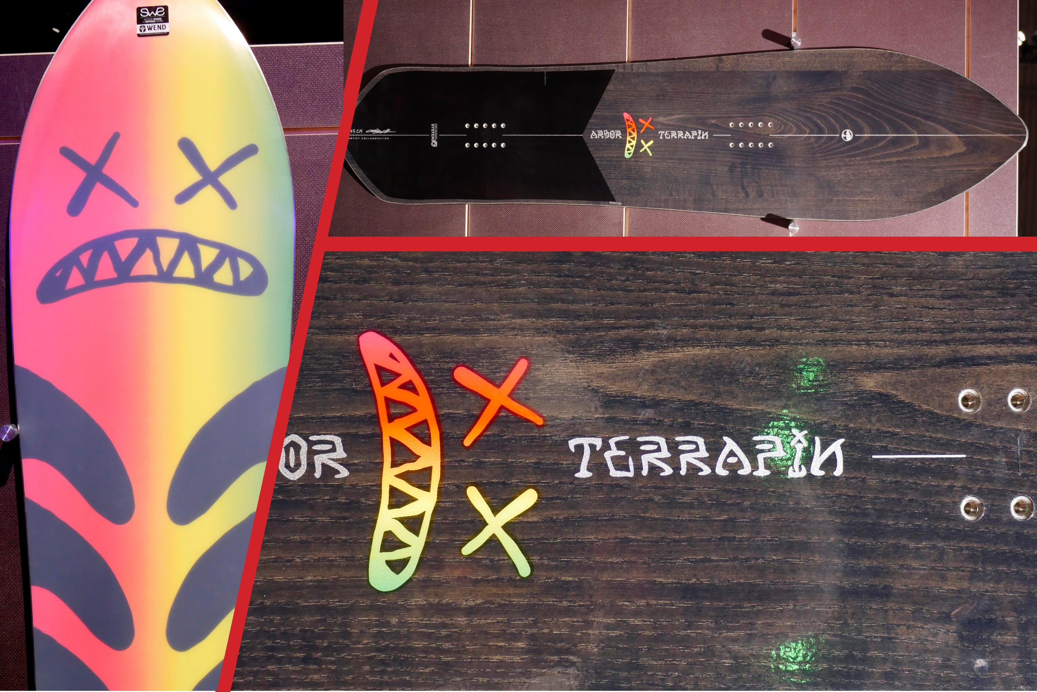 Arbor's Terrapin is a short and fat little powder surfer that's heavily inspired by the funky hot dogging surfboards of the 1970s, which is why it's doubly awesome they managed to convince C.R. Stecyk III to design the graphic. In case you're wondering who that is, he's the writer, photographer, filmmaker, artist and gonzo '70s skate journalist who originally documented, and later co-wrote, Dogtown and Z-Boys. His skulls-and-bones art style kickstarted the anti-establishment aesthetics of skate culture, which makes C.R. Stecyk III probably the biggest deal to have ever produced a snowboard graphic.