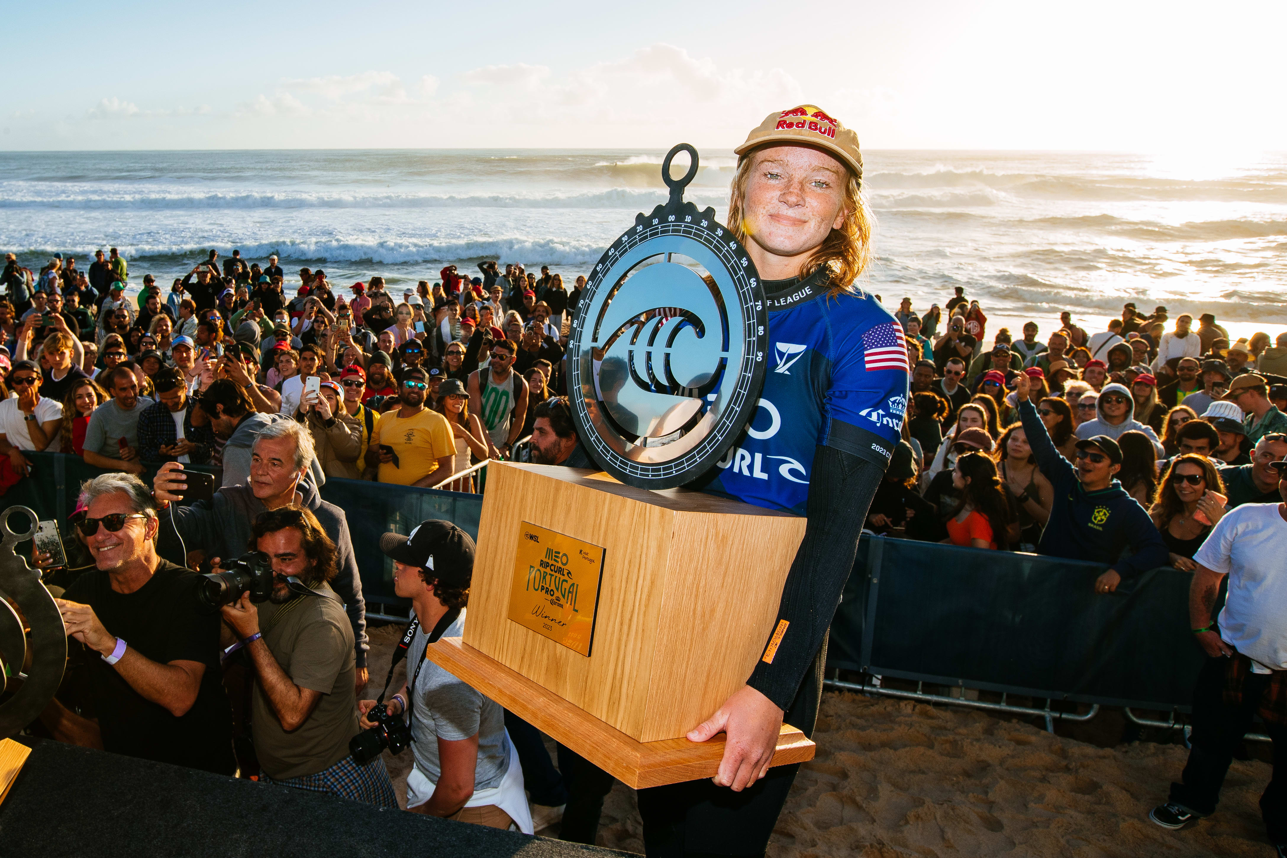 Californian Caity Simmers hoisted her first WSL CT trophy in Portugal