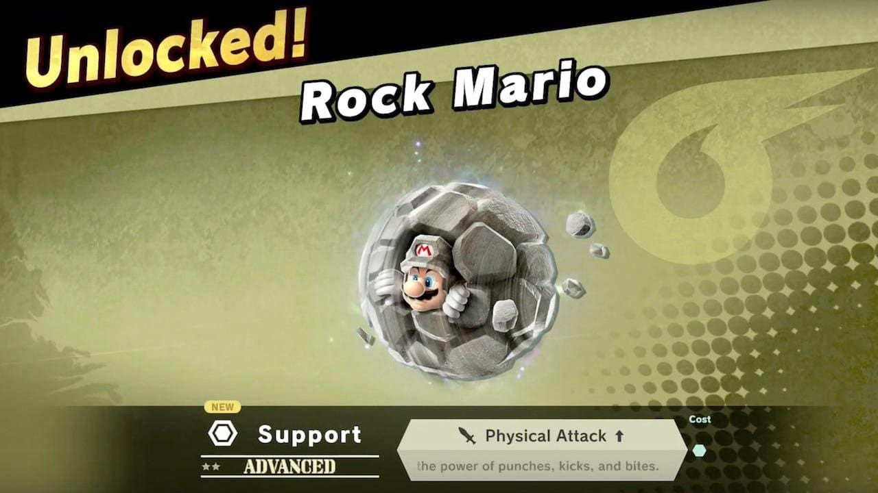Found at the base of Frozen Mountain, Rock Mario is an all-purpose Support Spirit with great versatility. It'll buff your character's punches, kicks, and bites, so whoever you choose as your main character, it'll buff him or her in at least one way, and perhaps, in multiple ways. The cost is right too; Rock Mario only takes up one slot, giving you room to personalise the rest of your team.