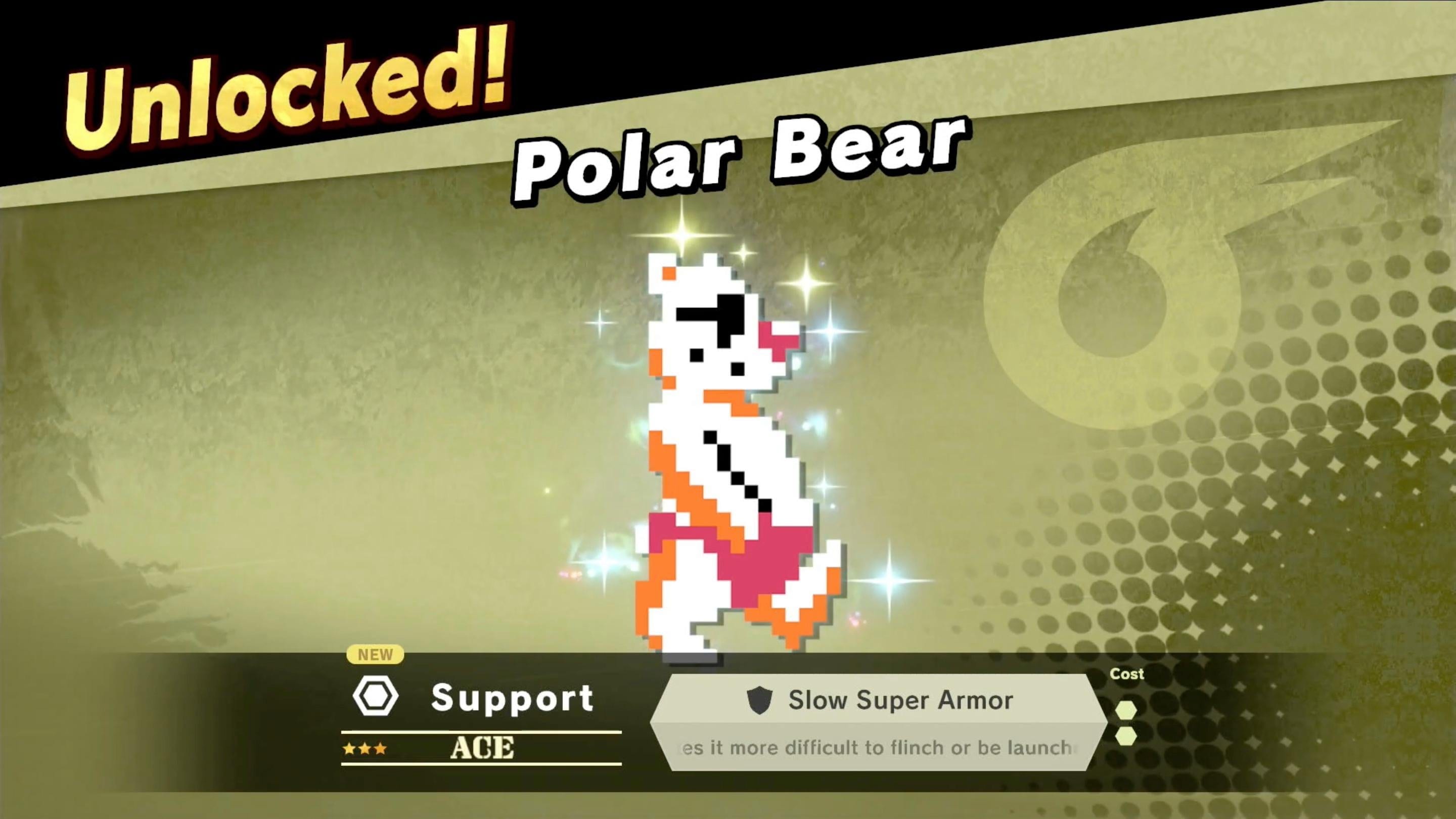 Another Support Spirit at the base of Frozen Mountain, the Polar Bear from Ice Climbers appears fairly early in World of Light. For two slots, he gives you Slow Super Armour, which means that even though you'll lose some speed, you'll also be very difficult to launch. Pair this with a high offensive Primary Spirit, and you won't even have to move much to chalk up a win.
