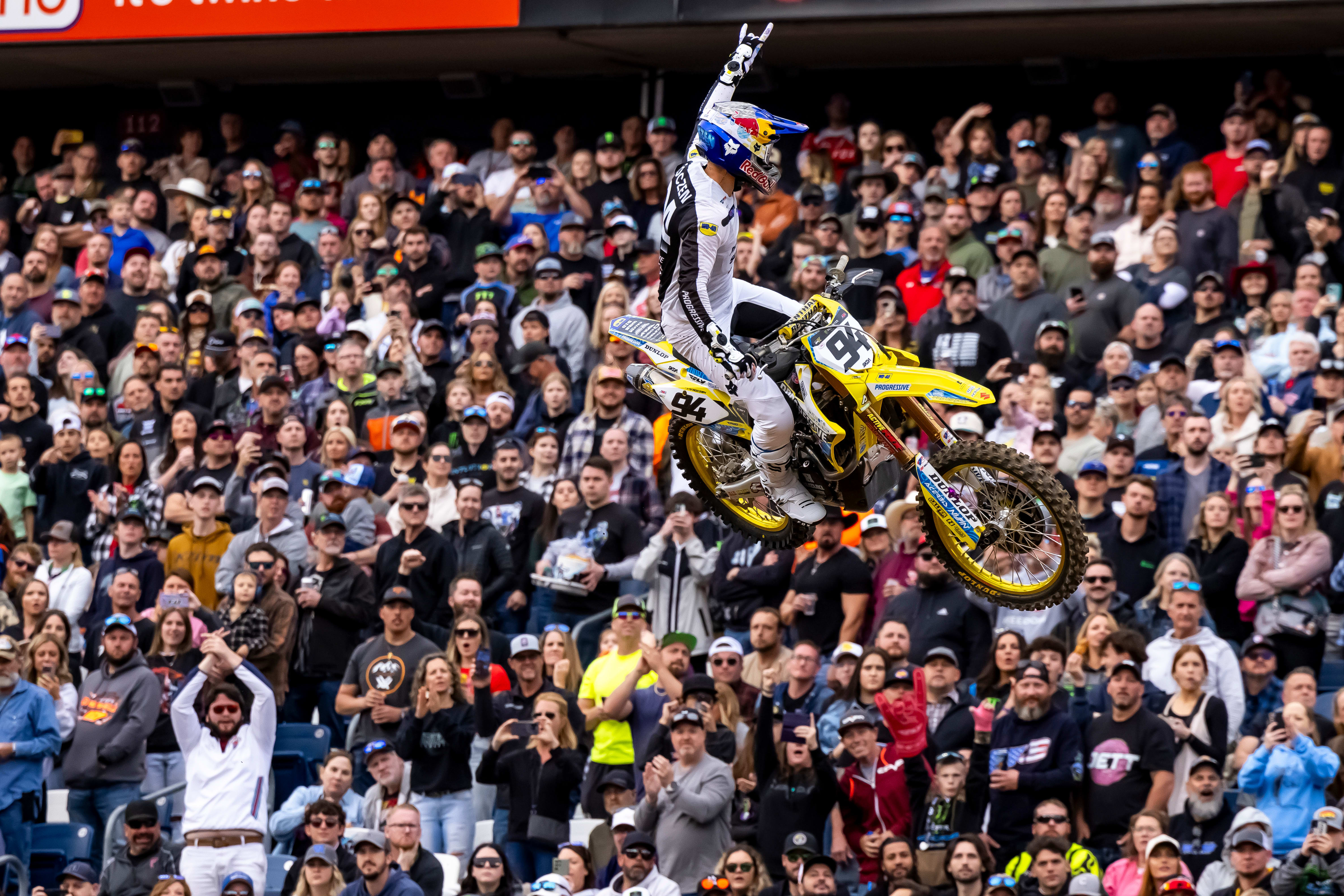 Red Bull KTM’s Chase Sexton entered the weekend third in the championship, but it was a tough night for the defending champion, as his throttle body was cracked by a rock, which made his throttle stick, and he crashed hard on a jump, ending his night. According to a KTM press release after the race, Sexton is okay and is expected to race next Saturday.