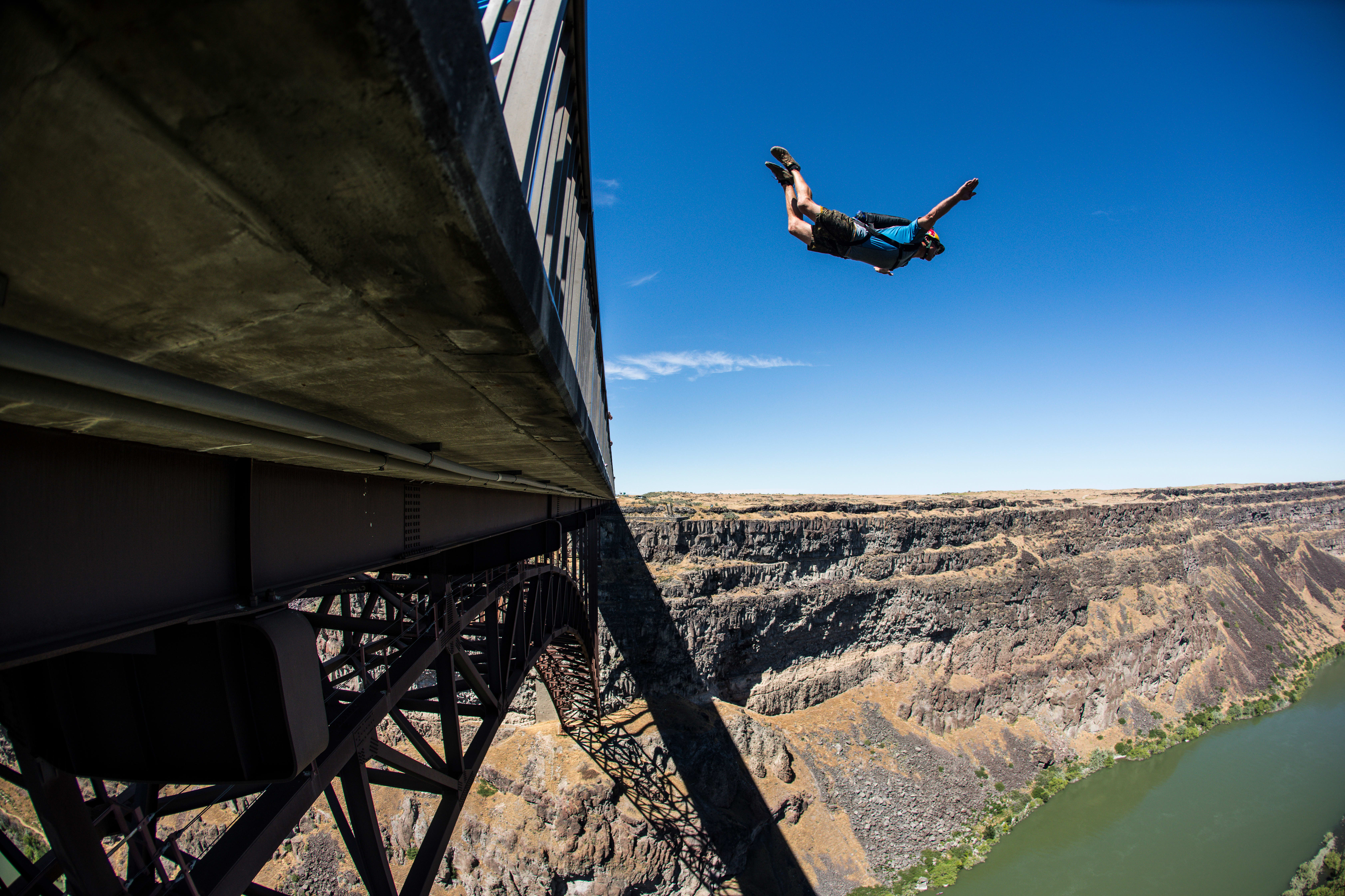 Taking off from the 486ft high Perrine Bridge in Idaho, Daisher performed a variety of acrobatic jumps before his parachute opened and he landed shortly thereafter on the bank of the Snake River. Then he climbed back up, a task he performed after each jump. By the time of his 63rd jump in less than 24 hours, it was the equivalent of climbing to the peak of Mount Everest (more than 29,000ft) in a day.