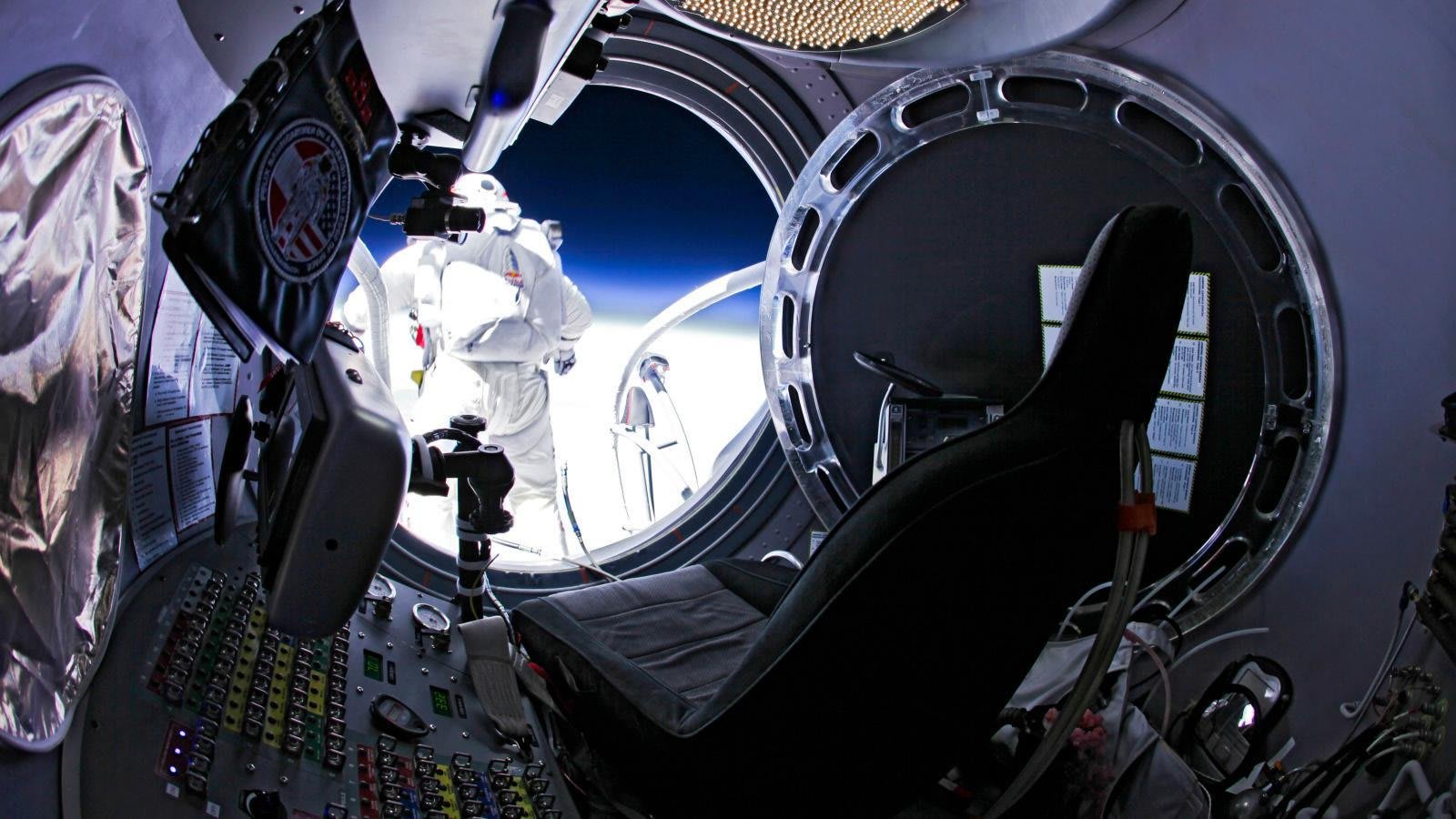 Baumgartner’s space suit was custom designed to provide the mobility necessary for controlled freefall, as well as modifications to enhance visual acuity, GPS tracking and thermal protection. “He could have gone to the moon in that suit, but yet he was also able to fall in a head-down position and be comfortable inside it,” said Mike Todd, the life support engineer from Sage Cheshire Aerospace who personally dressed Baumgartner for every jump.