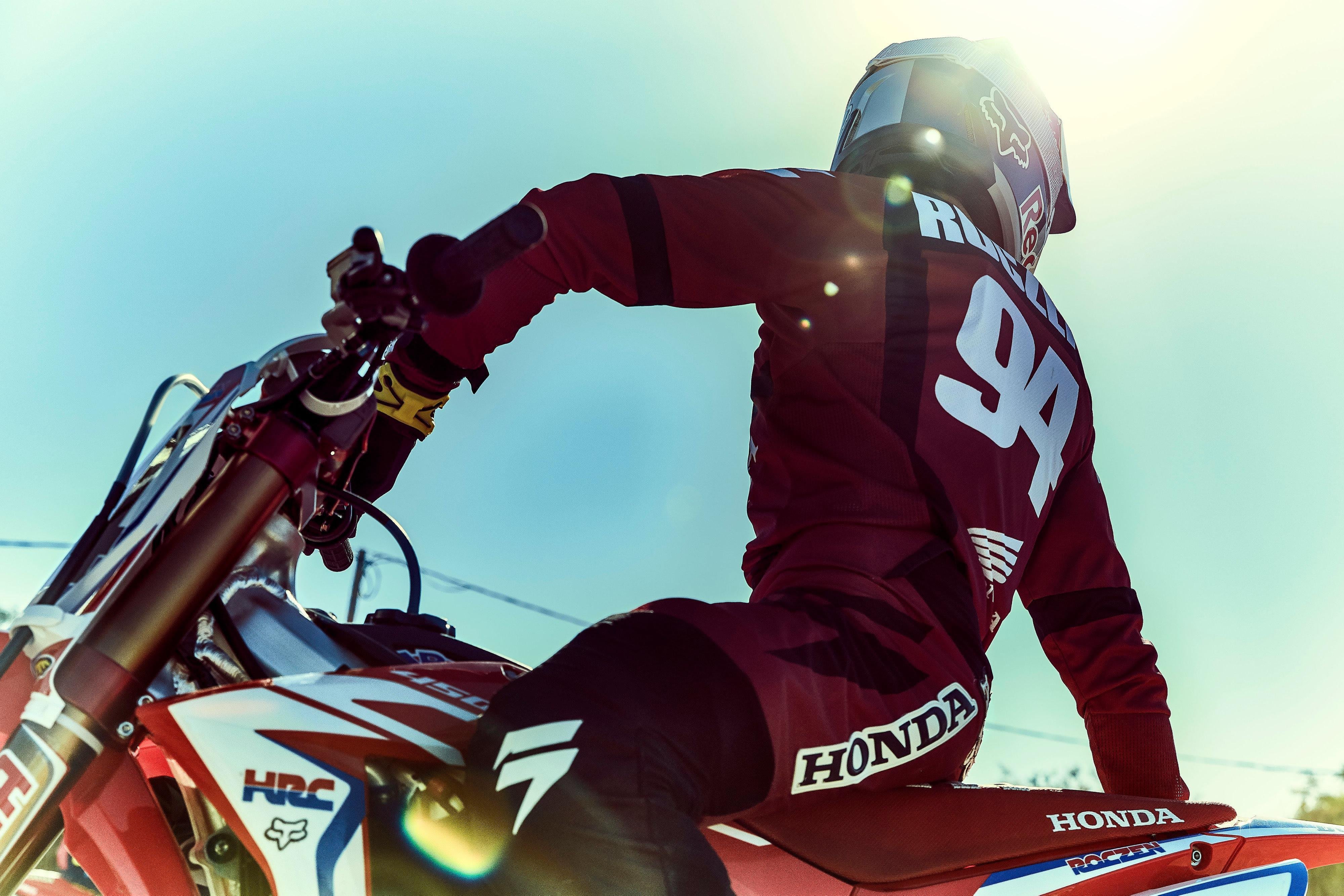 To make sure that everyone knows he’s serious about putting the injury behind him and getting on with the business of winning, he makes one final, unexpected, unspoken statement. At the fourth event of the season, in Glendale, Arizona, Roczen mounts his bike to prepare for the opening-ceremony lap. But as his highlight video appears on the Jumbotron, there’s no footage of the crash. Roczen told officials to remove it. On this January night, all the crowd sees on the big screen is Number 94, flying through the air and sticking the landing.