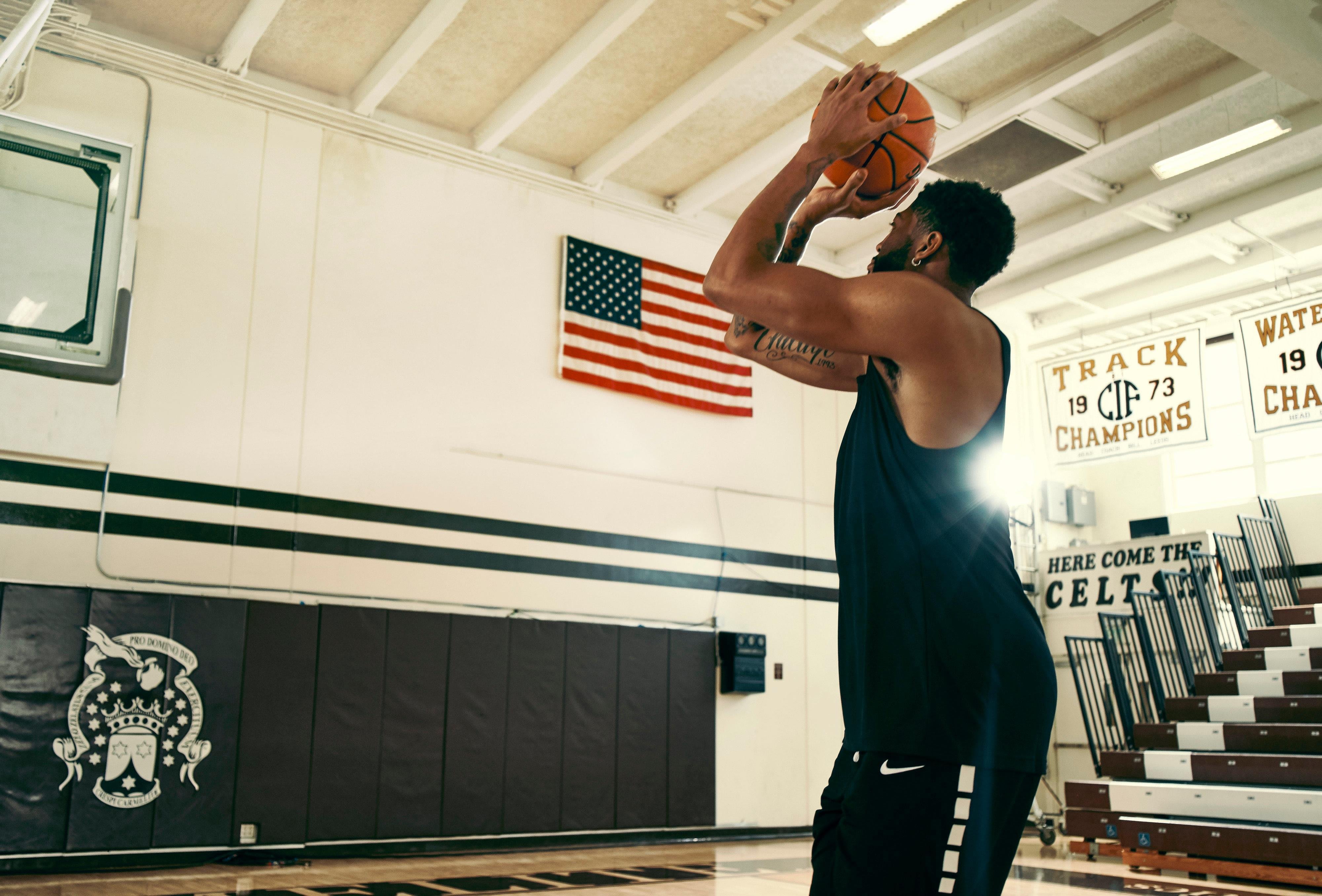 The gymnasium at Crespi Carmelite High School in Encino is a far cry from the Staples Center — there’s no one named Leonardo or Denzel or Charlize or Jack crowding the floor, and you certainly can’t savor a Ludo Lefebvre sandwich while watching a laser-light show — but it’s an equally big step up from where Davis played in high school on the South Side of Chicago. There, he attended an academically oriented charter school called Perspectives that didn’t even have an indoor court. Practice occasionally took place in a tiny church gym nearby but more commonly it was just outside on a small patch of pavement at Perspectives. “We’d drag a rollaway rim out onto the blacktop and chain it to the gate,” Davis tells The Red Bulletin. “We just played half-court out there.”