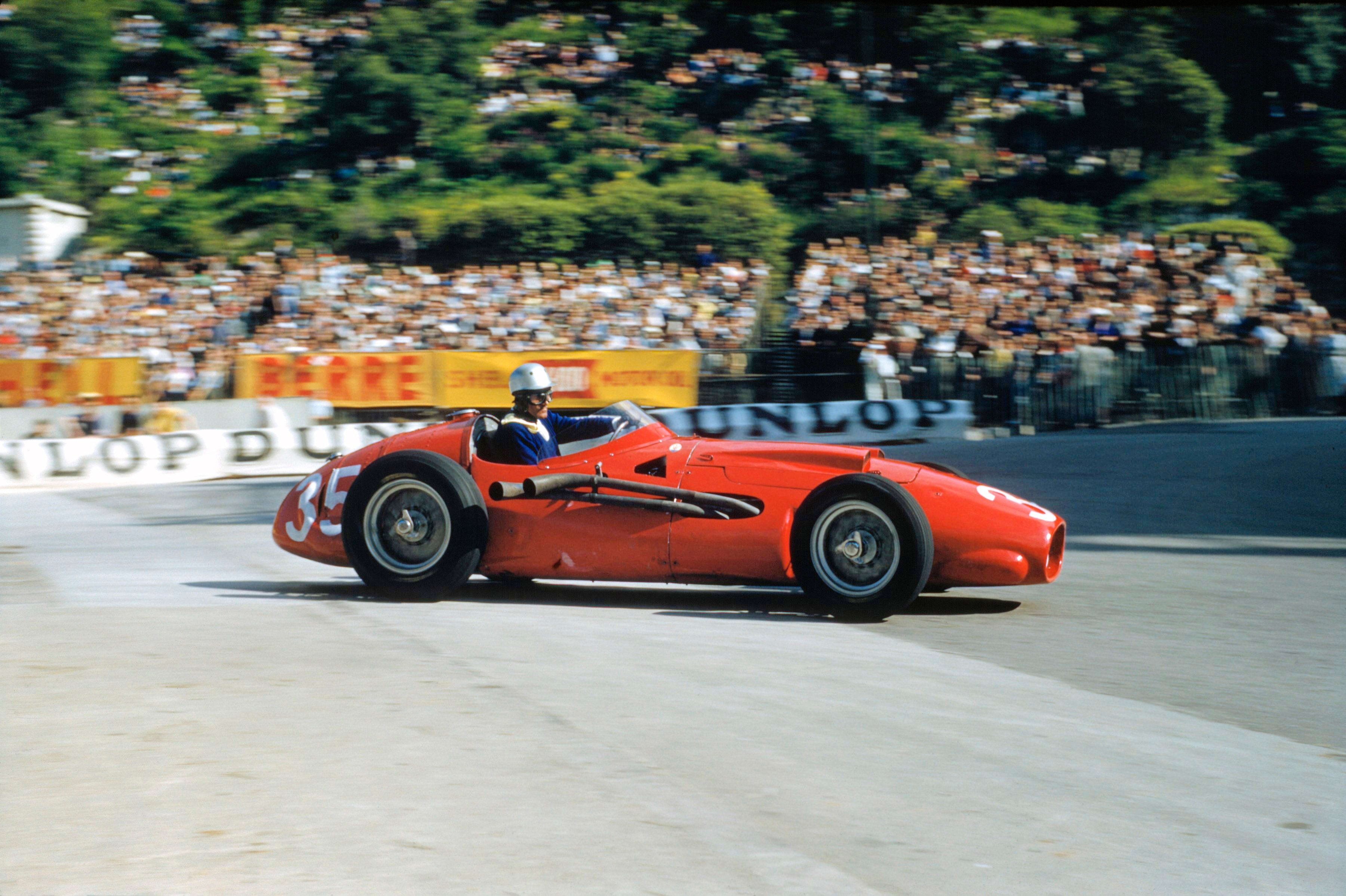 At the 1957 Monaco Grand Prix, Harry Schell—the first American driver to race Formula 1—rips a practice lap in his V12 Maserati 250F T2. Schell never won a race but twice finished on the podium. [LEFT]