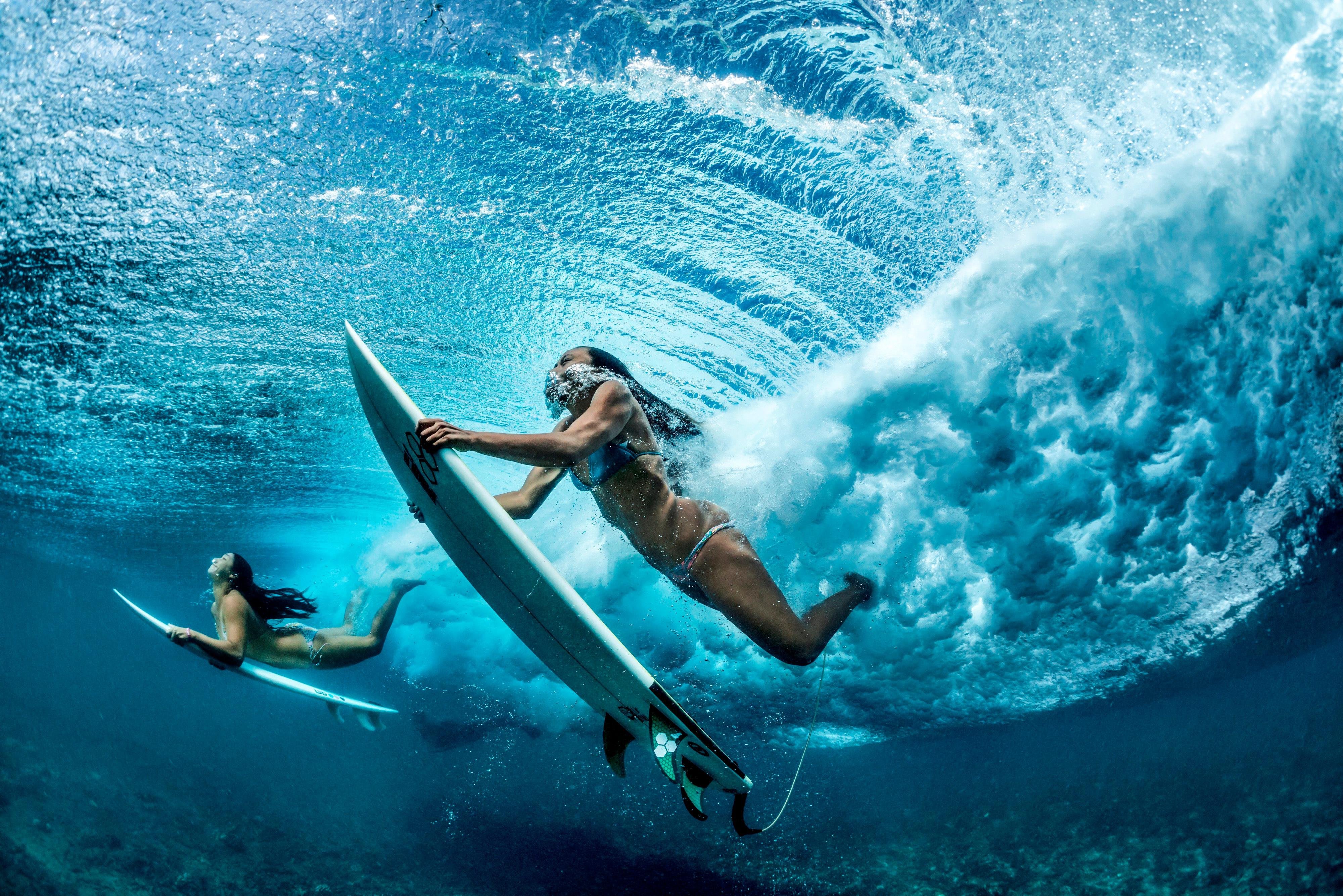 “I was very young and didn’t really know what it was for," Keaulana says. “It was just fun at first, and then I realized, ‘Oh, it’s training for if we get held under.’” With around 12 seconds between waves, being able to stay under for a minute after a wipeout can mean surviving a four-wave hold-down. “Doing that and moving fills your lung capacity, and the depth prepares you for the pressure if a wave were to push you deep underwater.”