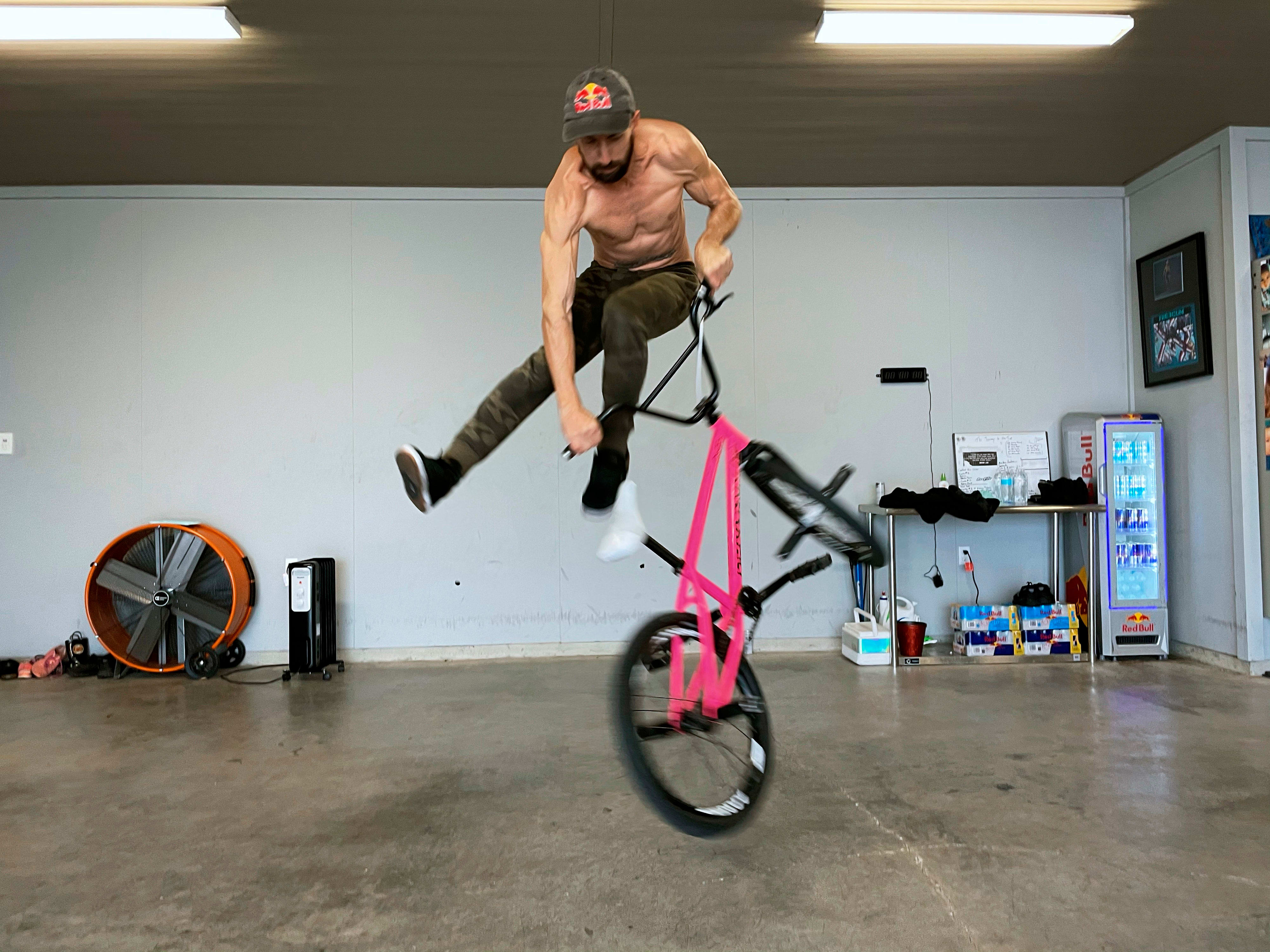 “It’s just me and the ground out here—that’s exactly how I feel when I’m walking out to the garage to do the workout or get on the bike,” he says. “Let me just lock the door on this garage and work on this art form that I fell in love with when I was a kid.”