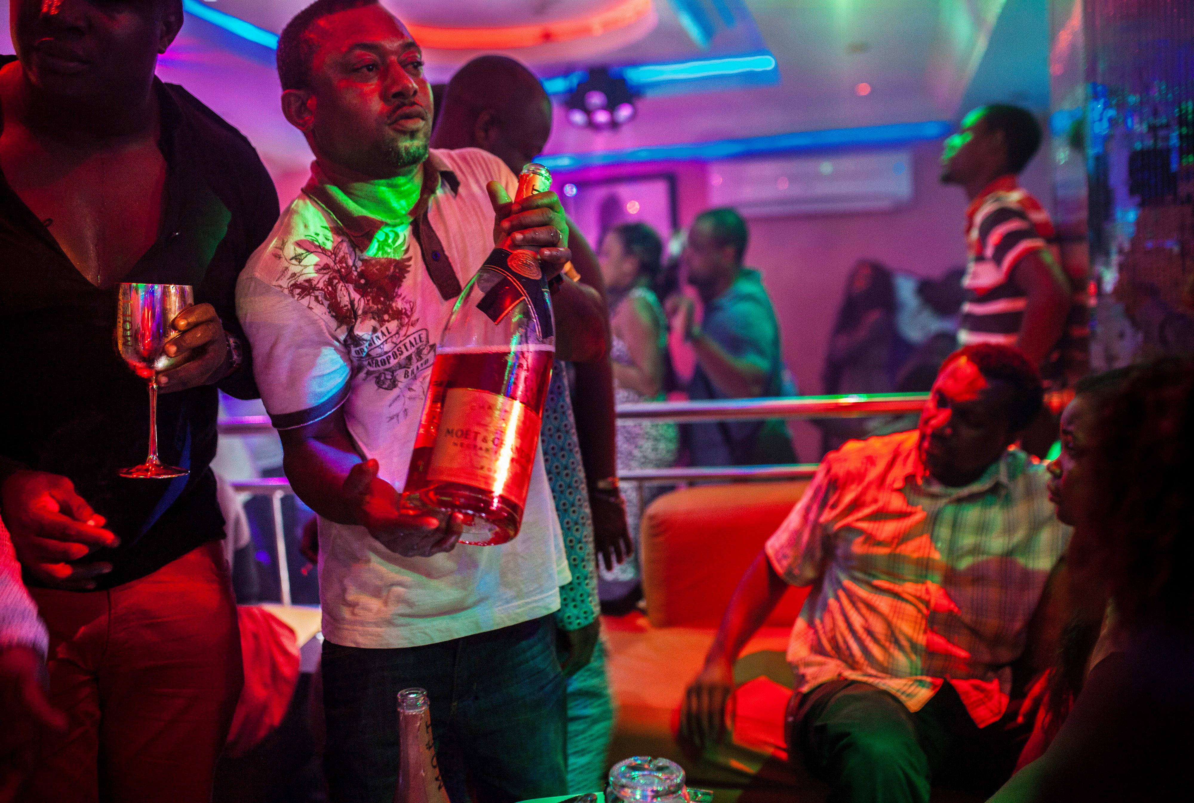 More than merely celebrating Lagos’ nightlife, Esiebo’s photos show the effect of rapid urban development on its people. “There’s a growing middle class and more opportunities for young people, but the bid to improve their lifestyle has led to a high level of inequality. Some parts of Lagos feel like totally different cities. But whether rich or poor, people want the same things. Even a guy who has no money wants to buy champagne.”