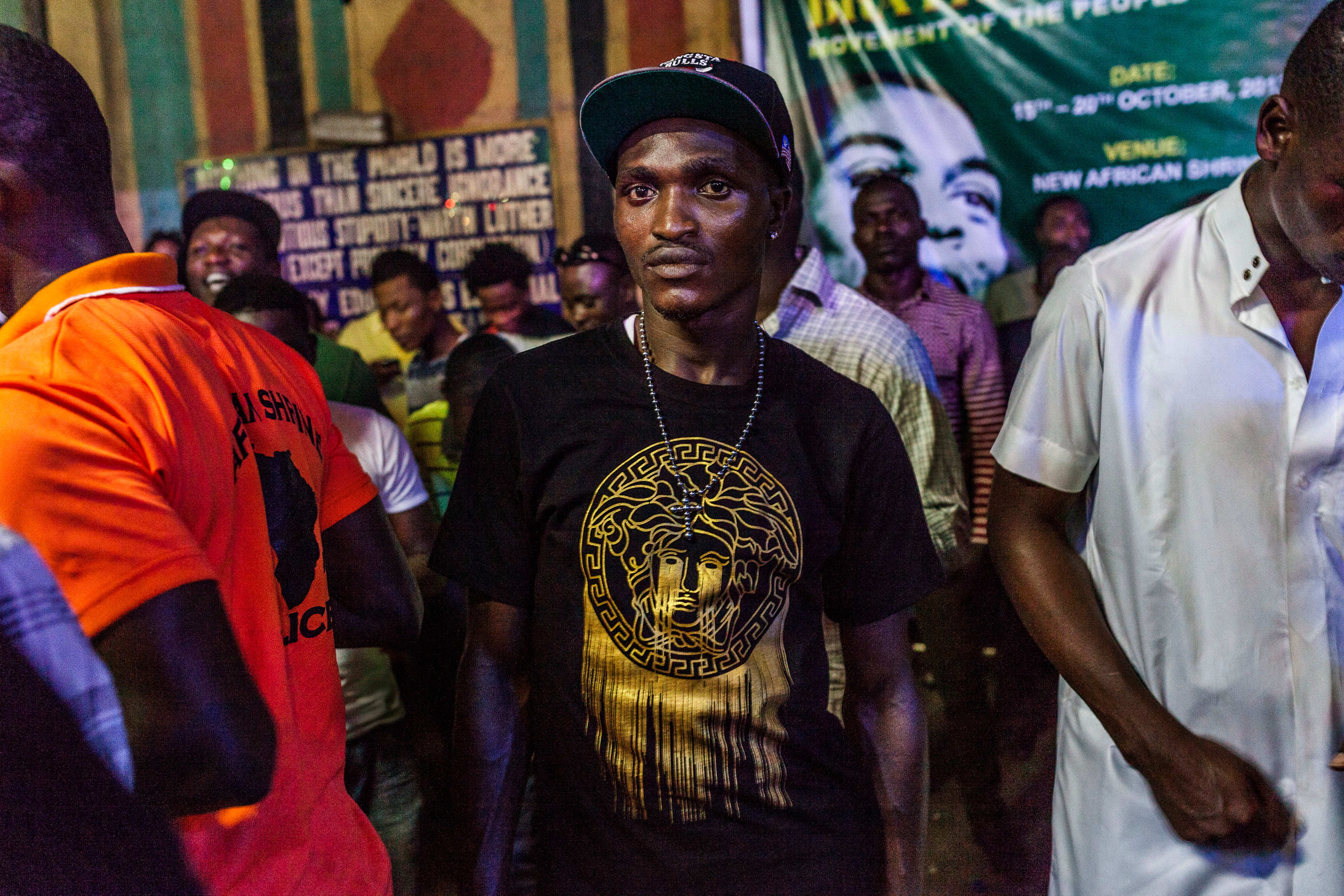 "I took this photo because I loved the door – it has this ethnic design and it showcases some of the city’s aesthetic," says Esiebo. "I also wanted to capture these doormen. It used to be that only high-end clubs had bouncers, but now I go to places and find there’s always someone at the gate. They’ve become a more typical element of parties across the city and I wanted to show that.”