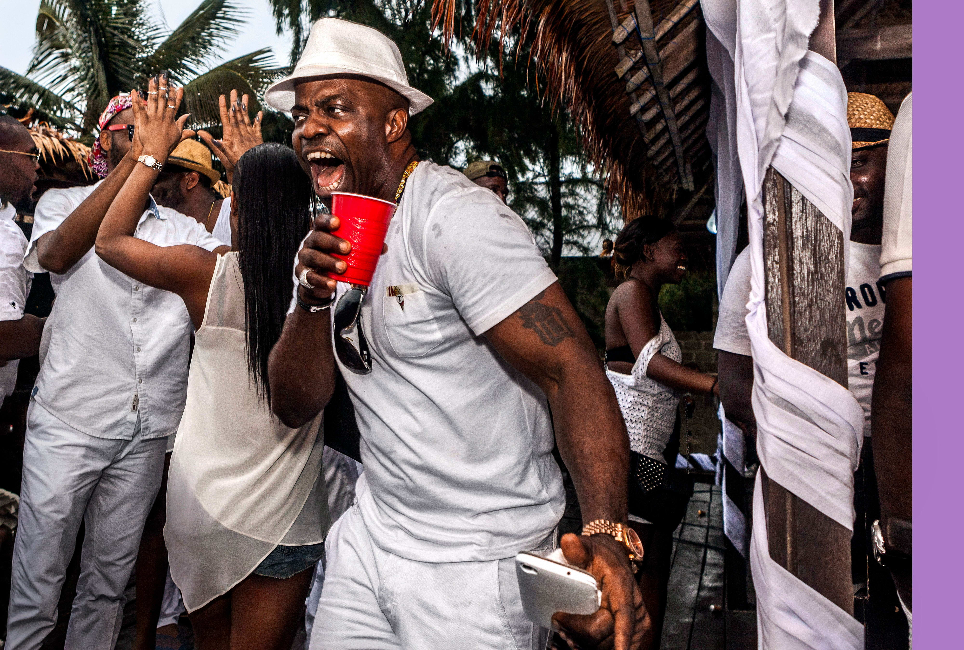 “This photo was taken at a party on Ilashe Island, a neighbourhood that’s popular for beach houses. A lot of luxury drinks companies sponsor high-end parties and this one was courtesy of [cognac maker] Hennessy. It was called the All White ‘Privilege Party’ – you took a boat from the island, the theme was privilege, and you had to dress all in white. It was not a party for the poor people. I wanted to show the people there; the dancing and the tensions between them.”