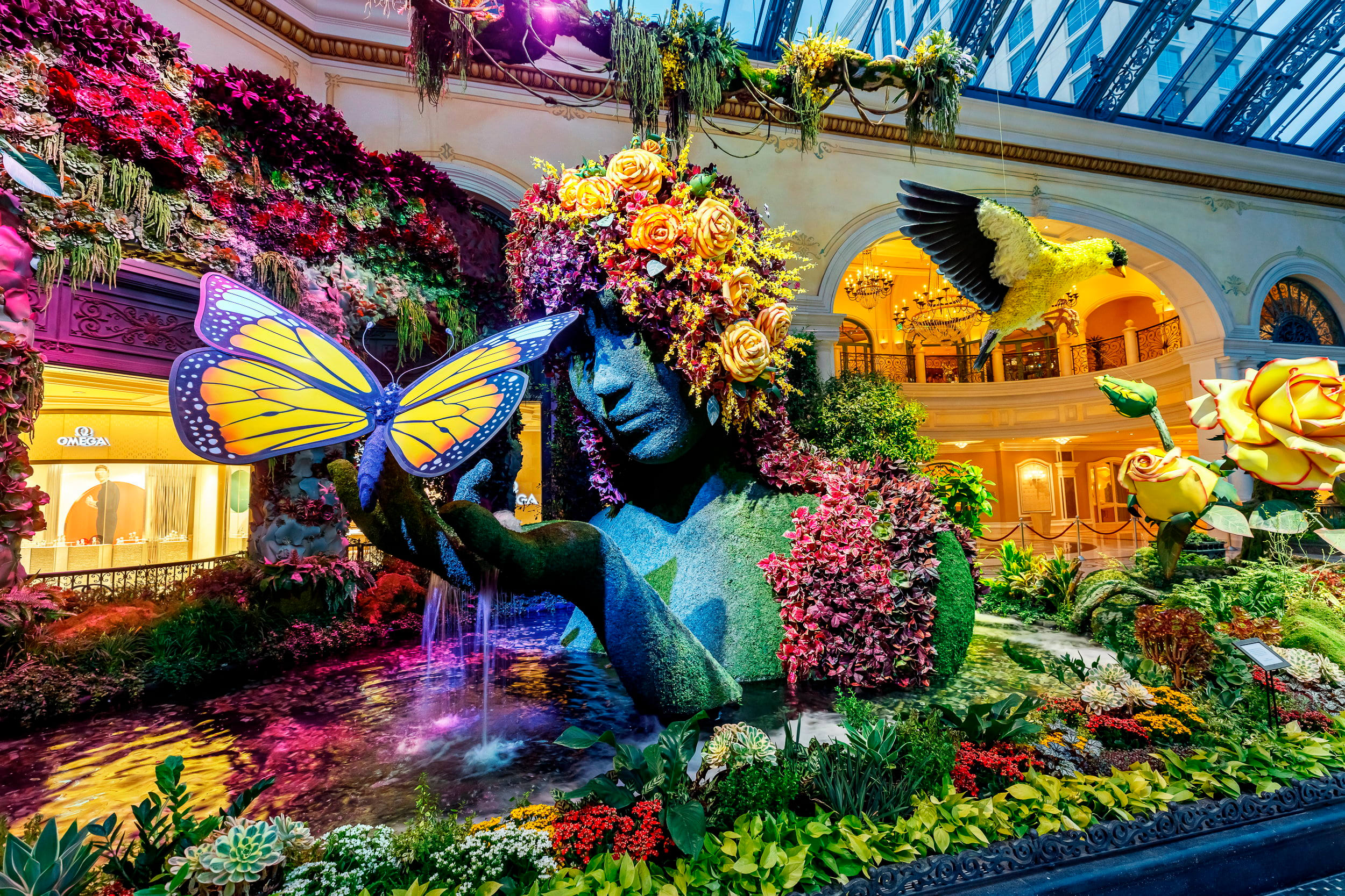 A lush, glass-encased botanical garden filled with a towering display of stunning technicolor arrangements isn’t exactly the first thing that comes to mind when you think of Las Vegas, but it shouldn’t surprise you, either.