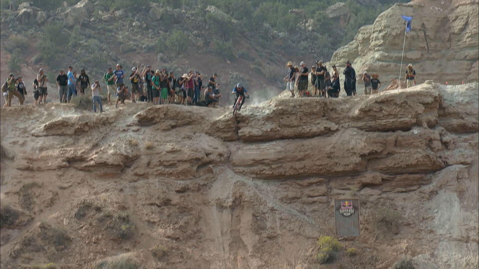 But he overshot his landing. Not by much, but enough to change his life. While trying to correct, his right pedal hooked a branch of trailside sagebrush. That launched him over an eight-foot ledge, onto his back. Though it was a heavy crash, it didn’t look out of the ordinary by Rampage standards.