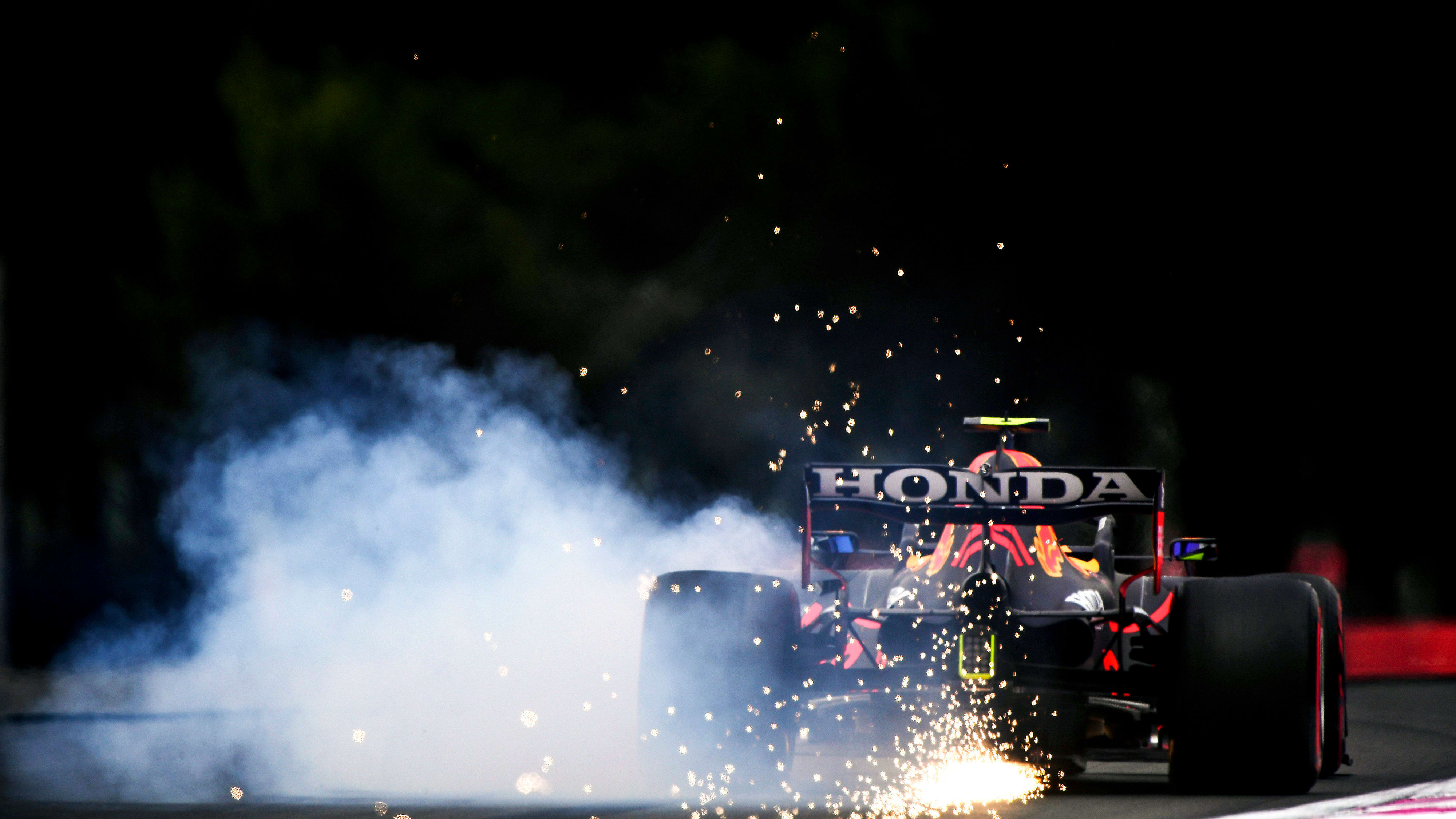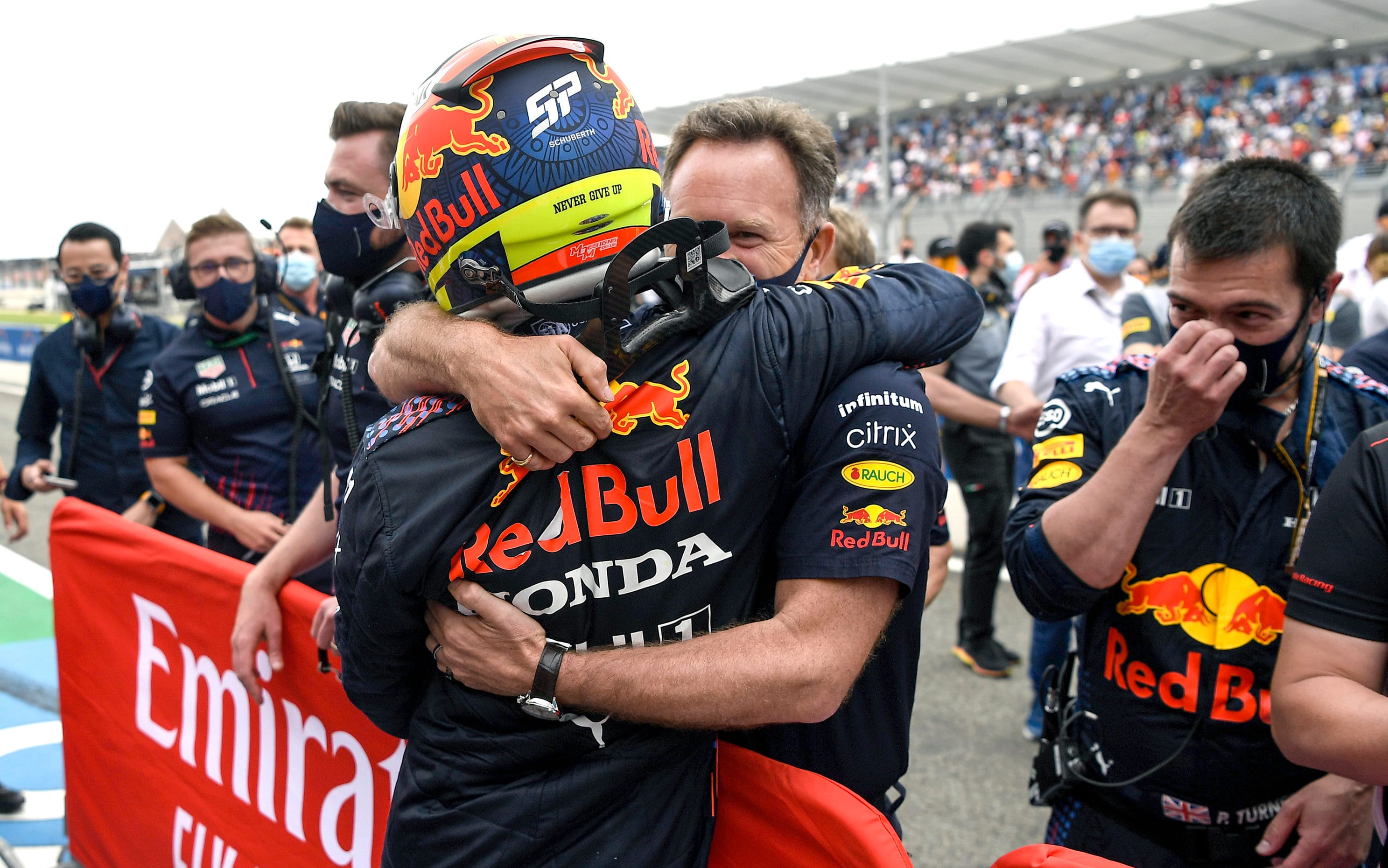 But then, as they enter the corner, Hamilton’s finger slips. At the back of his steering wheel is a button his team calls “brake magic,” a switch designed to heat tires by throwing the brake balance of the car all the way to the front of the car. His front wheels lock and he careers through the braking zone, inches from tearing off the front end of the Red Bull car. Pérez powers through to victory, to redemption and ultimately to vindication. Roll credits. The unthinkable has happened.