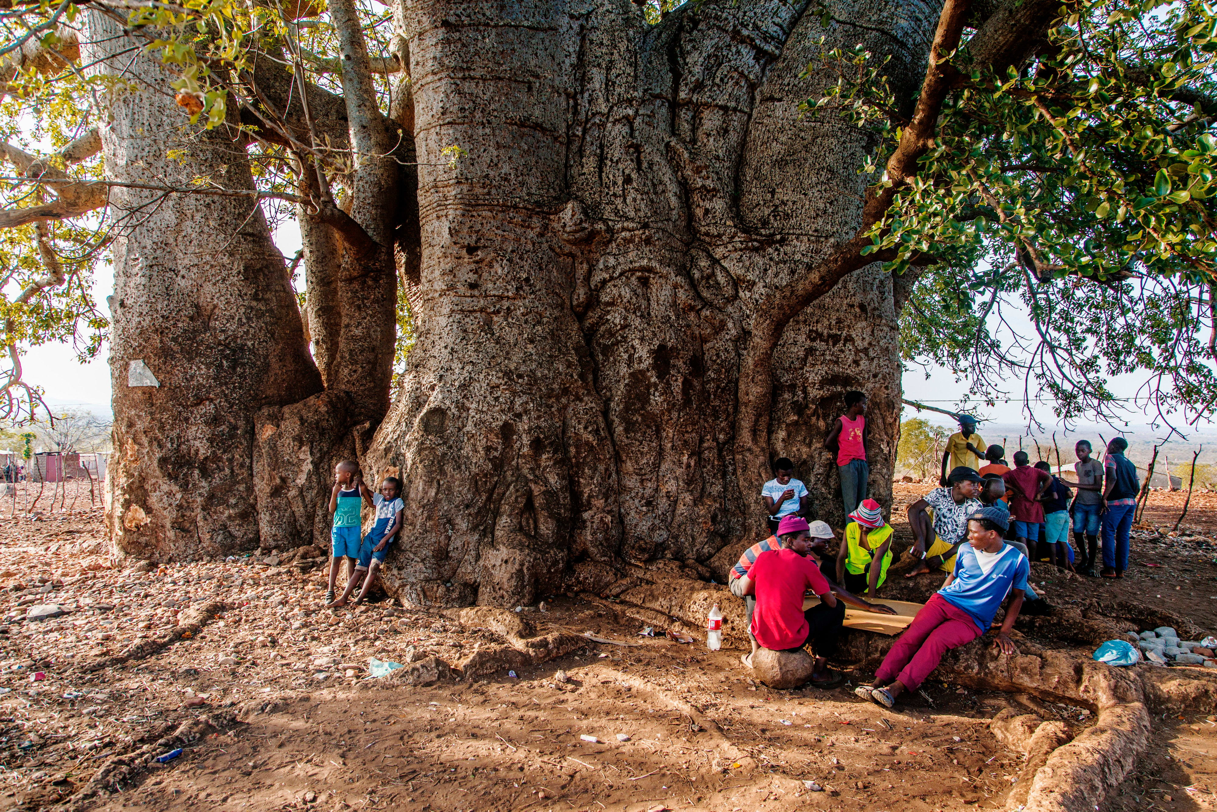 I found the King-of-Garatjeke in a very different setting. Towering above the dusty rural village of Maekgwe, this leafy baobab is a gathering point for the local community. As I arrived, a group of young men were playing a game of dice beneath the tree; goats and chickens pecked at its soil while small boys leaned against it. Like so many baobabs across Africa, the King-of-Garatjeke acts as a kind of town hall. The trees also double as prisons, post offices, gun safes, cool rooms and treehouses; one – located on the Caprivi Strip in northeast Namibia – even houses a porcelain flush-toilet.