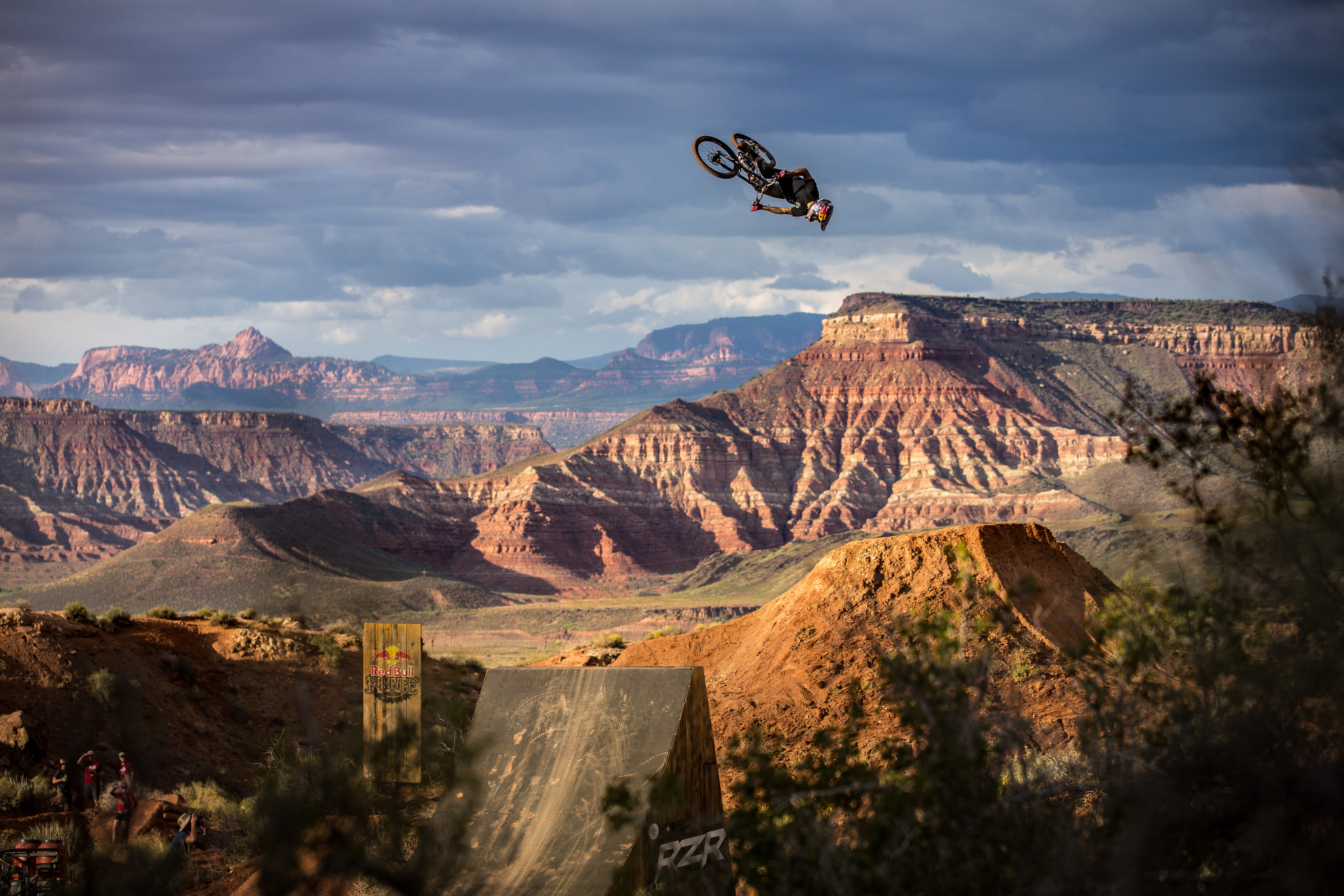 "Of all the images I have captured at Rampage, this might be my favorite. This particular venue had views towards Zion and the beautiful sandstone cliffs and this jump allowed us to capture that in the background. At the end of practice one day, the boys were sessioning this jump for about an hour. Fortunately, this gave me time to grab my strobe to add some extra punch to the rider. Andreau was sending this huge and stylish with his off-camber backflip. All the elements came together for this image!"