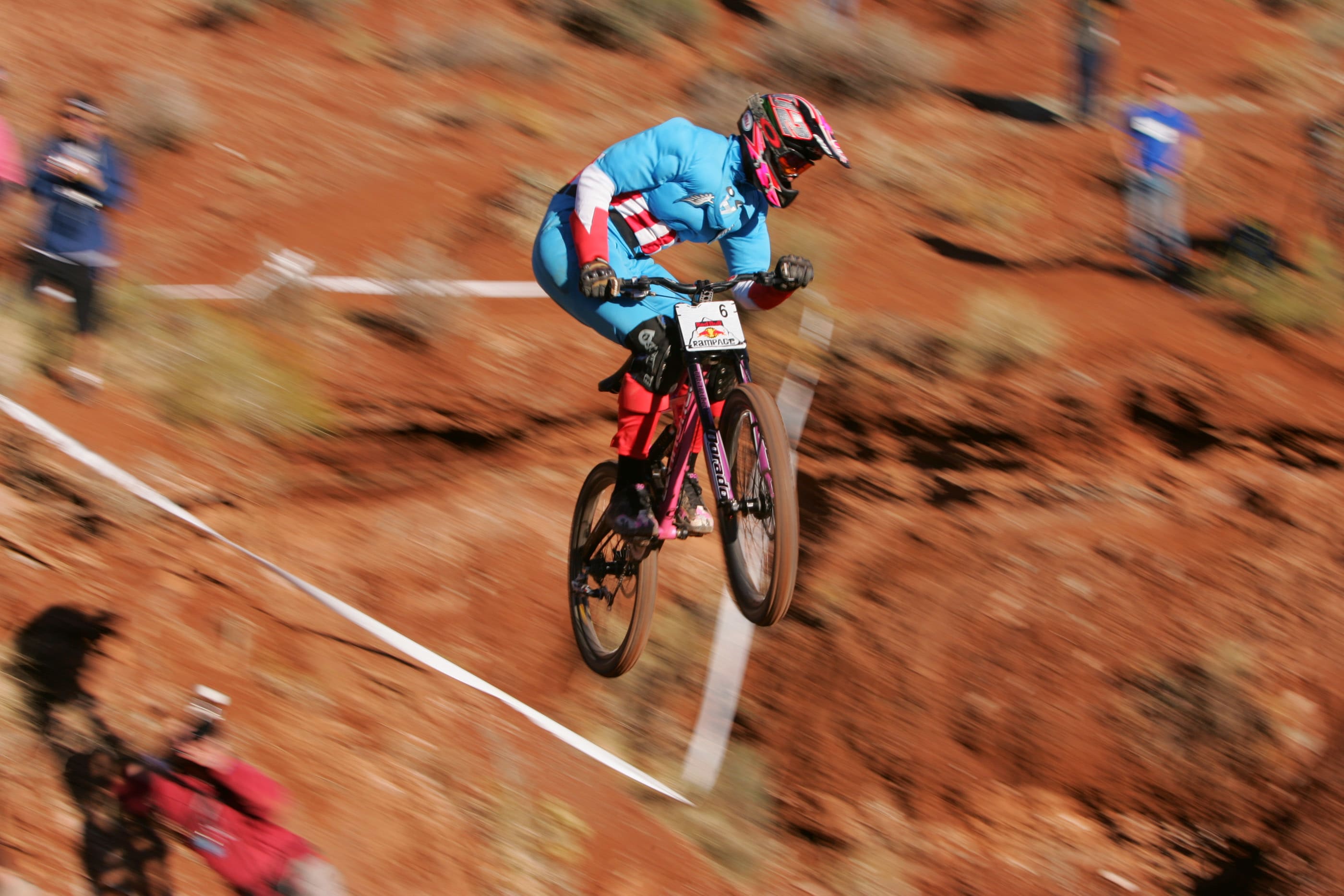 "A tribute to Kelly McGarry. Kelly always went huge and here he is sending the canyon gap during finals back when the spectators were allowed on the course. Seeing him backflip over the crowds of spectators was certainly a highlight of all the Rampage’s."