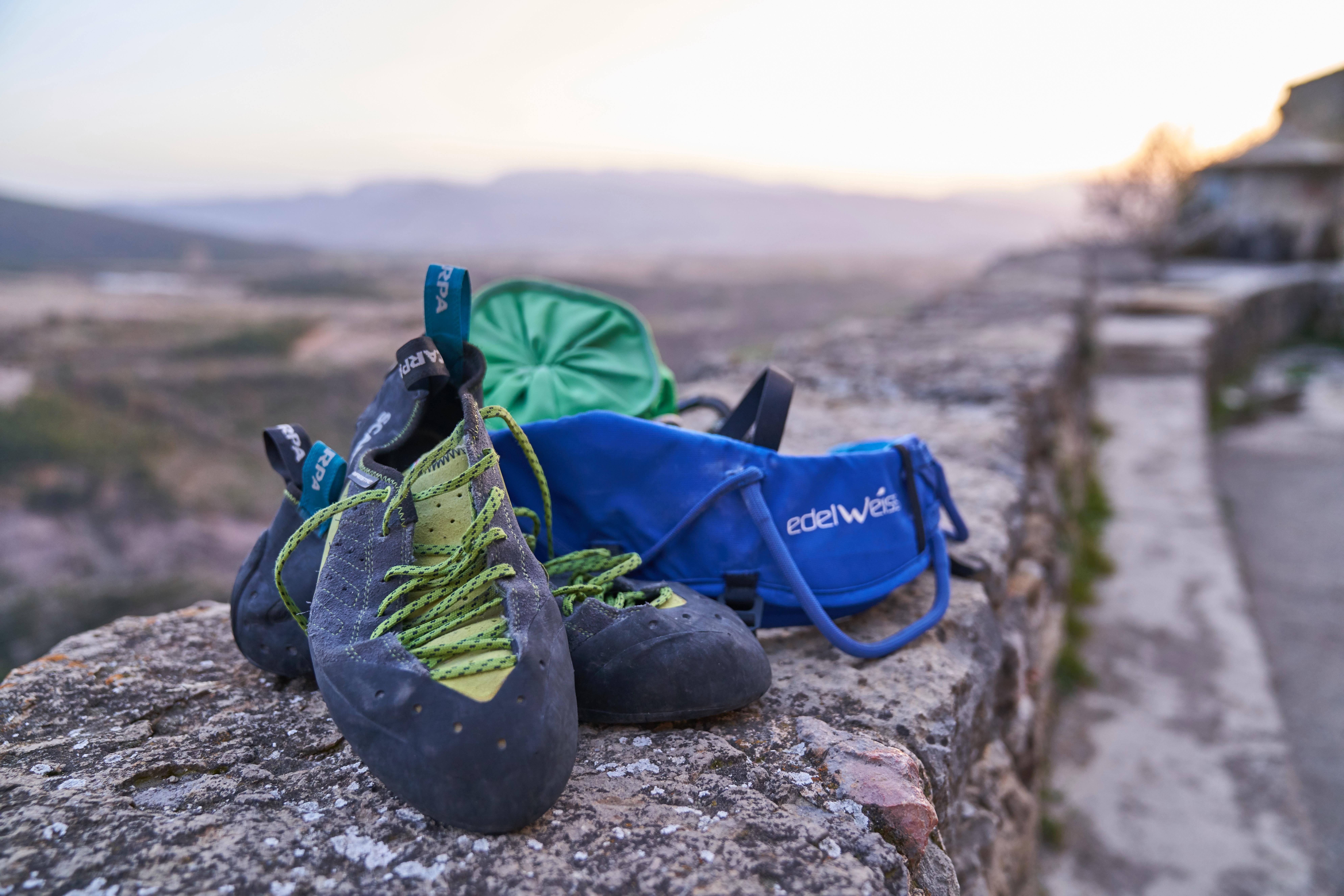 Trusting your feet will become one of your key skills. A lot of people used to climbing indoors can find it eye-opening in regards to what you can stand on in climbing shoes, from tiny pebbles sticking out of granite, to slabs of sandstone that look completely blank until you see the suggestion of a scoop and commit your weight onto it. You have to believe in the friction – something less aggressively downturned climbing shoes, like Scarpa’s Maestro, can make easier.