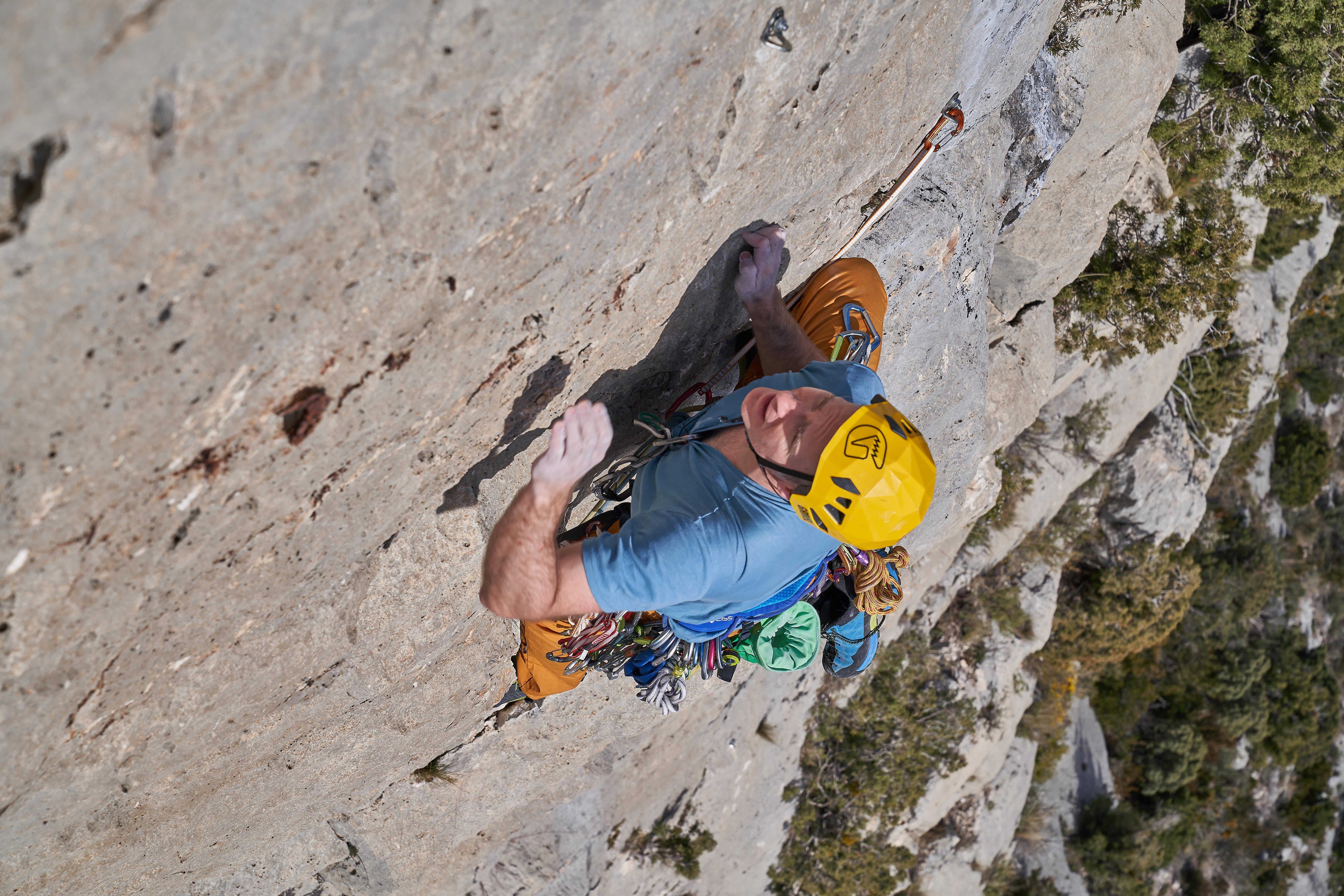 It’s easy to start feeling exposed and vulnerable while high up on a rock face. Even those with a solid head for heights can end up getting ‘Elvis’ leg and find themselves trembling over a sheer drop. This is normal according to Durand. "The best technique to use to help you manage the fear [not control it] is from British climber Hazel Findlay – come back to your breathing – and you can do that through breathing exercises or yoga. Mindful climbing can help."