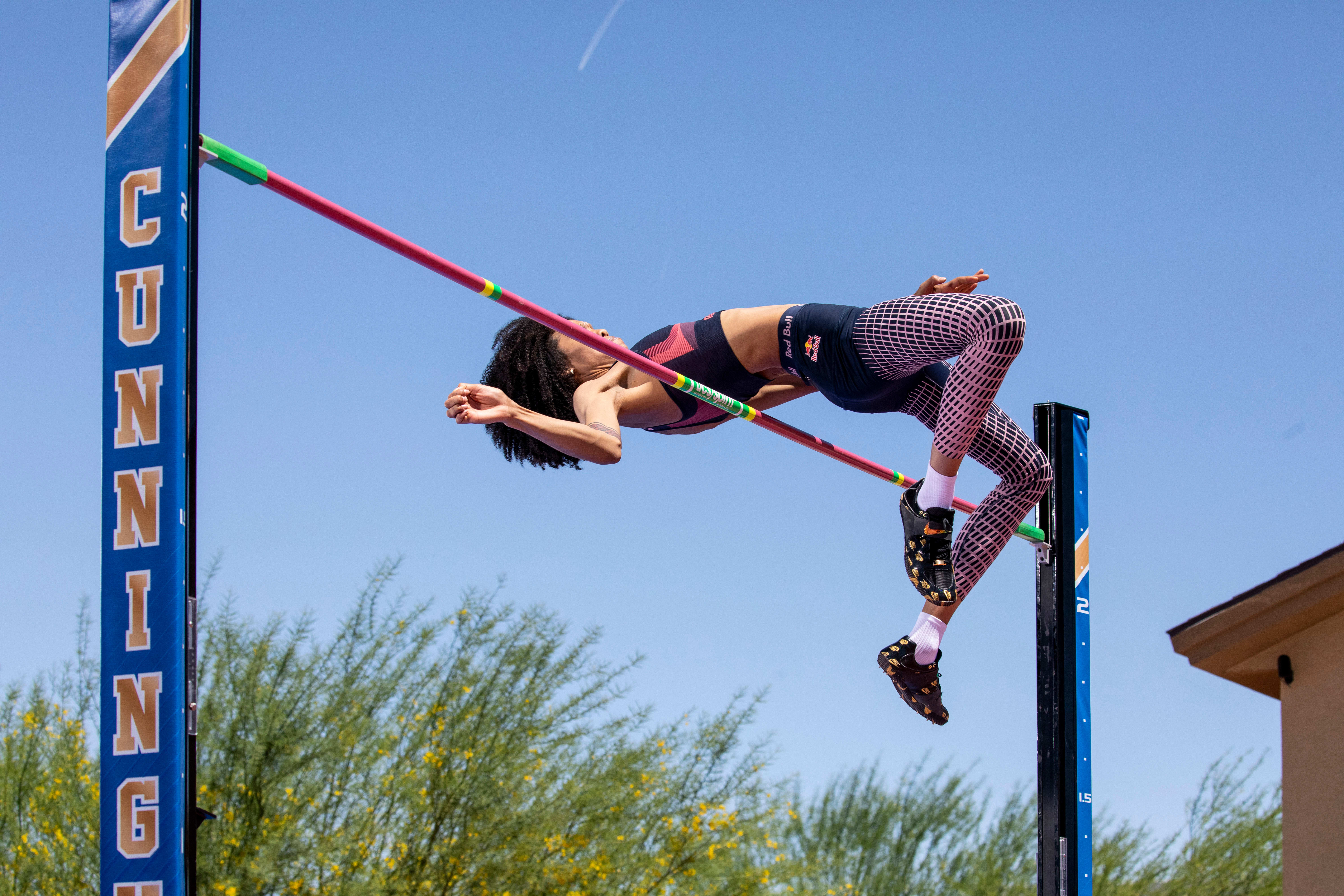Cunningham arches her back as she goes over, every muscle under the masterful control of a mind trained in both precision and artistry. In the air, her mind registers suspended reality—a blip in time, temporary quiescence—that ends only after she clears the bar and lands in the pit. With a 6-foot-1 and 123-pound frame, even a roll up from the pit foam appears graceful. And Cunningham—the reigning queen of the U.S. high jump since she was a teenager—returns to her starting point for the next leap.