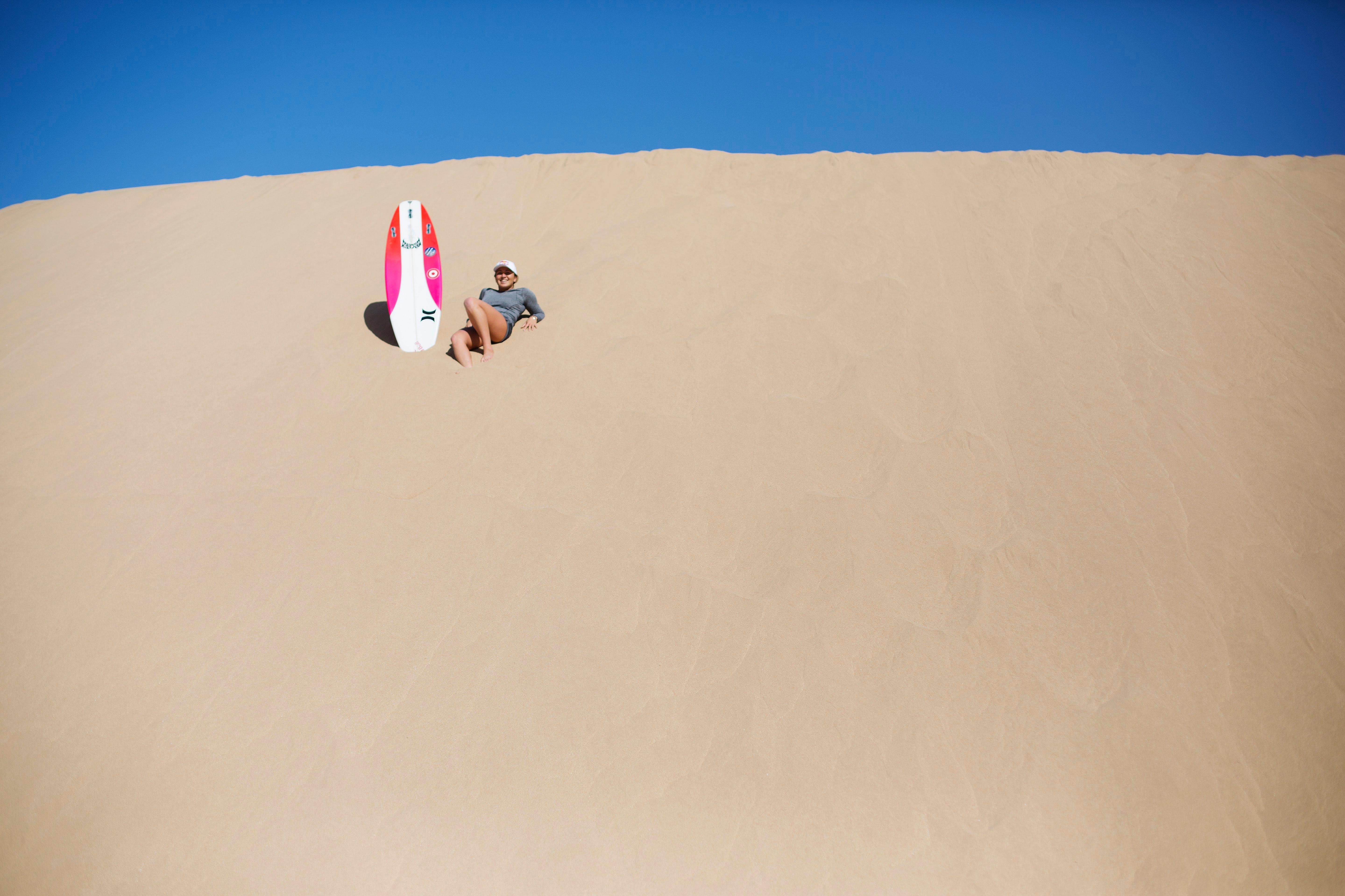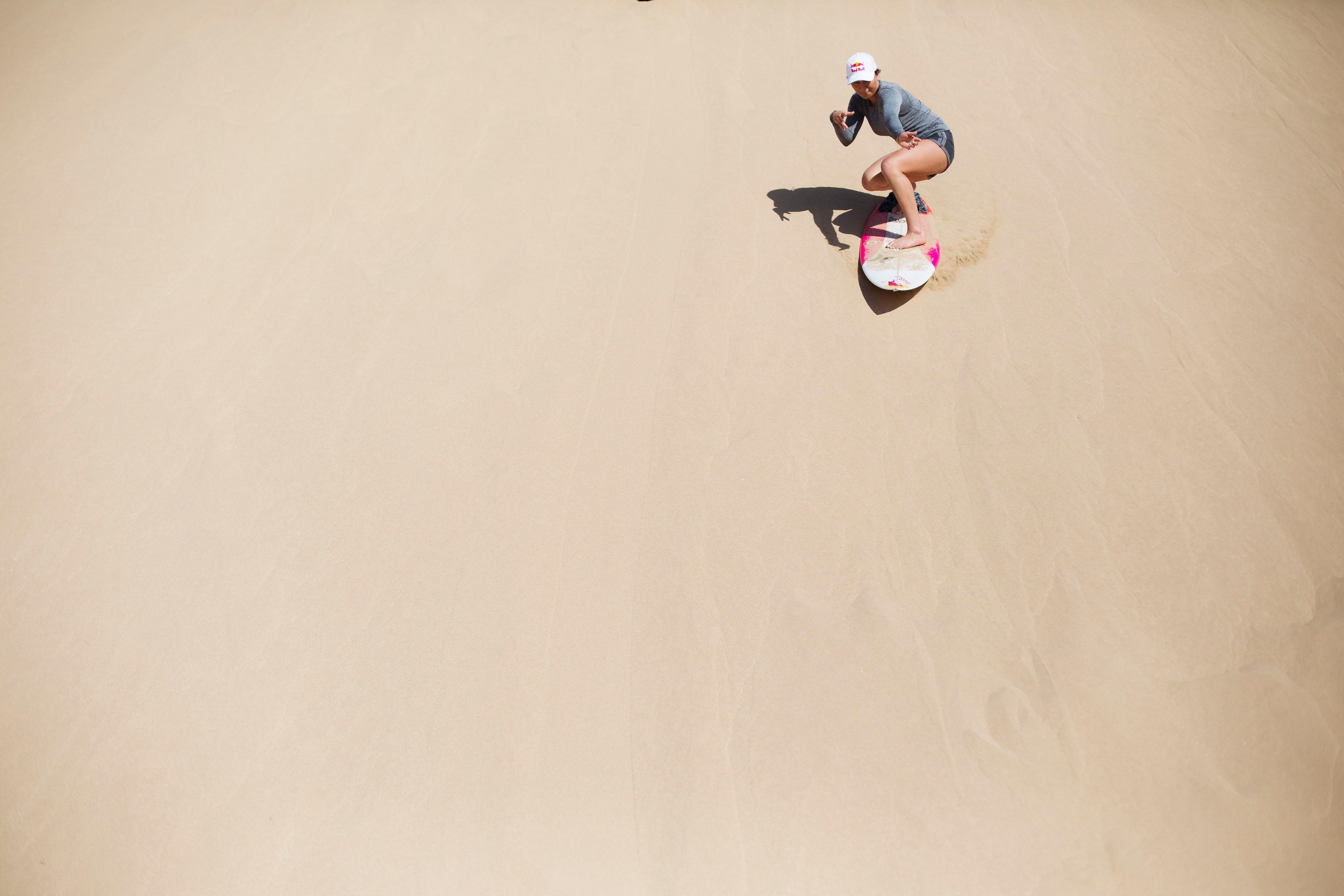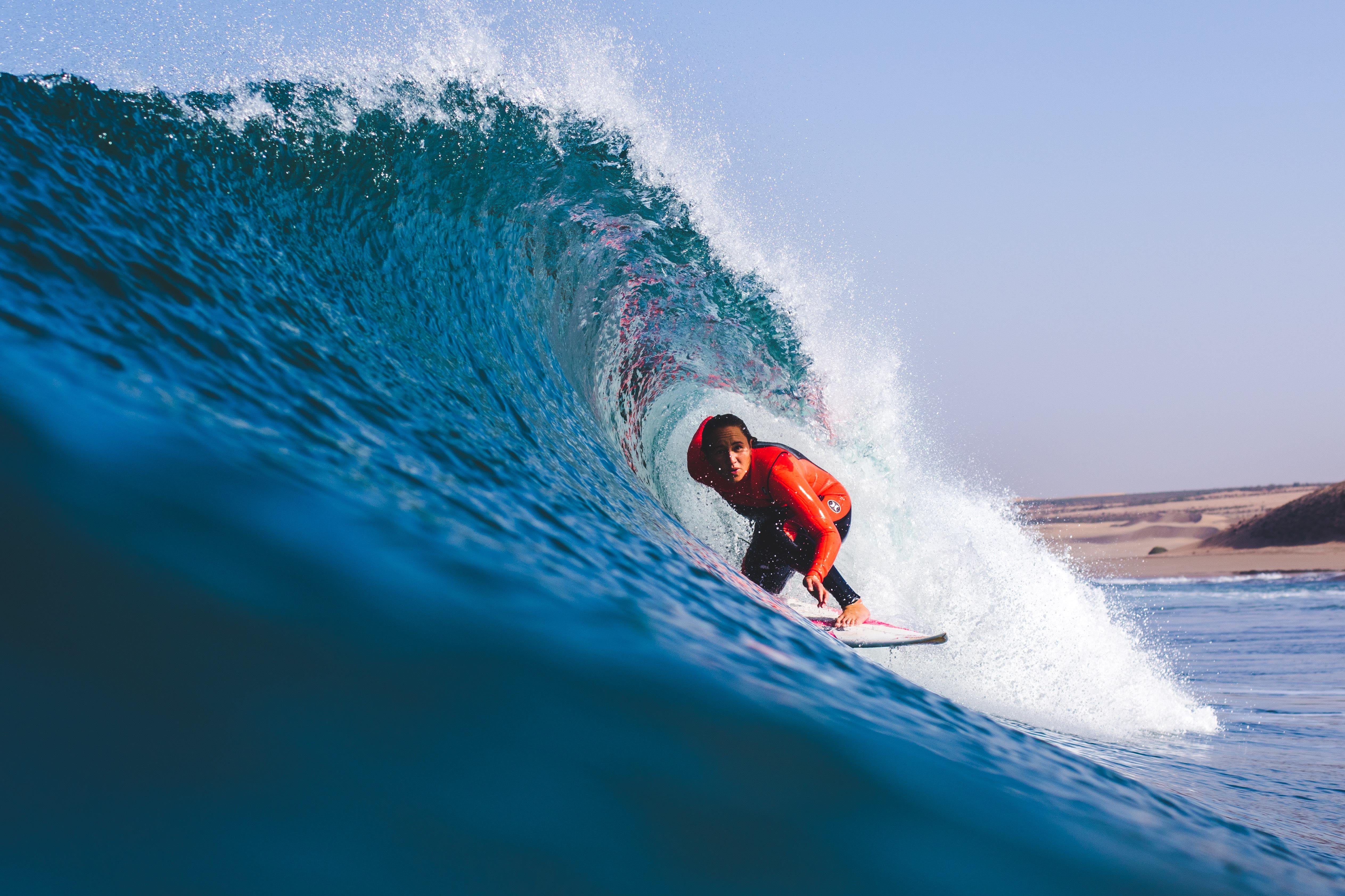 From Israel it was a flight across the top of Africa to get to Morocco. And while the Atlantic Ocean was fairly quiet during her stay, there was still enough swell on offer for Moore to indulge. “I don’t get the chance to film and watch myself freesurf too often, so this trip offered that opportunity,” she says. “I’ve been wanting to put together a video piece with real innovation and progressive surfing, but I also want to motivate people to step outside their comfort zones and do stuff they might not otherwise do, while hopefully inspiring people to give back a little along the way.”